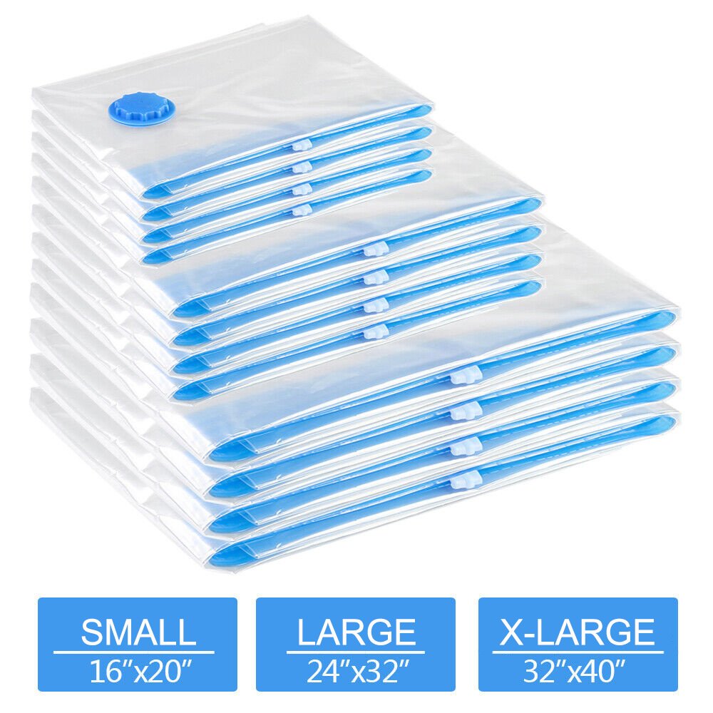 Features:1. 100% Brand new and high quality.2. Reusable and space-saving; can save up to 85% of storage space3. Extremely easy to use; Zip slider ensures quick and convenient closure4. Protects against moist; bugs; moths; water; mildew; dirt; and odor; Clothes remain fresh and clean5. Perfect for storing clothes; blankets; comforters; pillows; etc.6. Works with any household vacuum cleaner with a hose attachment; or simple hand air sucking pump7. Can be easily stored in closets; attics; basements; garages; under beds; suitcases; and so on.8. Ideal for home use and travel packingSpecifications:Material: Plastic (PET+PE)Color: ClearSize:Small:16"x20"Large: 24"x32"Extra Large: 32"x40"Package Includes:Please choose the size and set you needNote:Due to manual measure; please allow a 1-2cm error.We have different packs and sizes for you to choose from; pls choose the one you need from the drop-down menu!