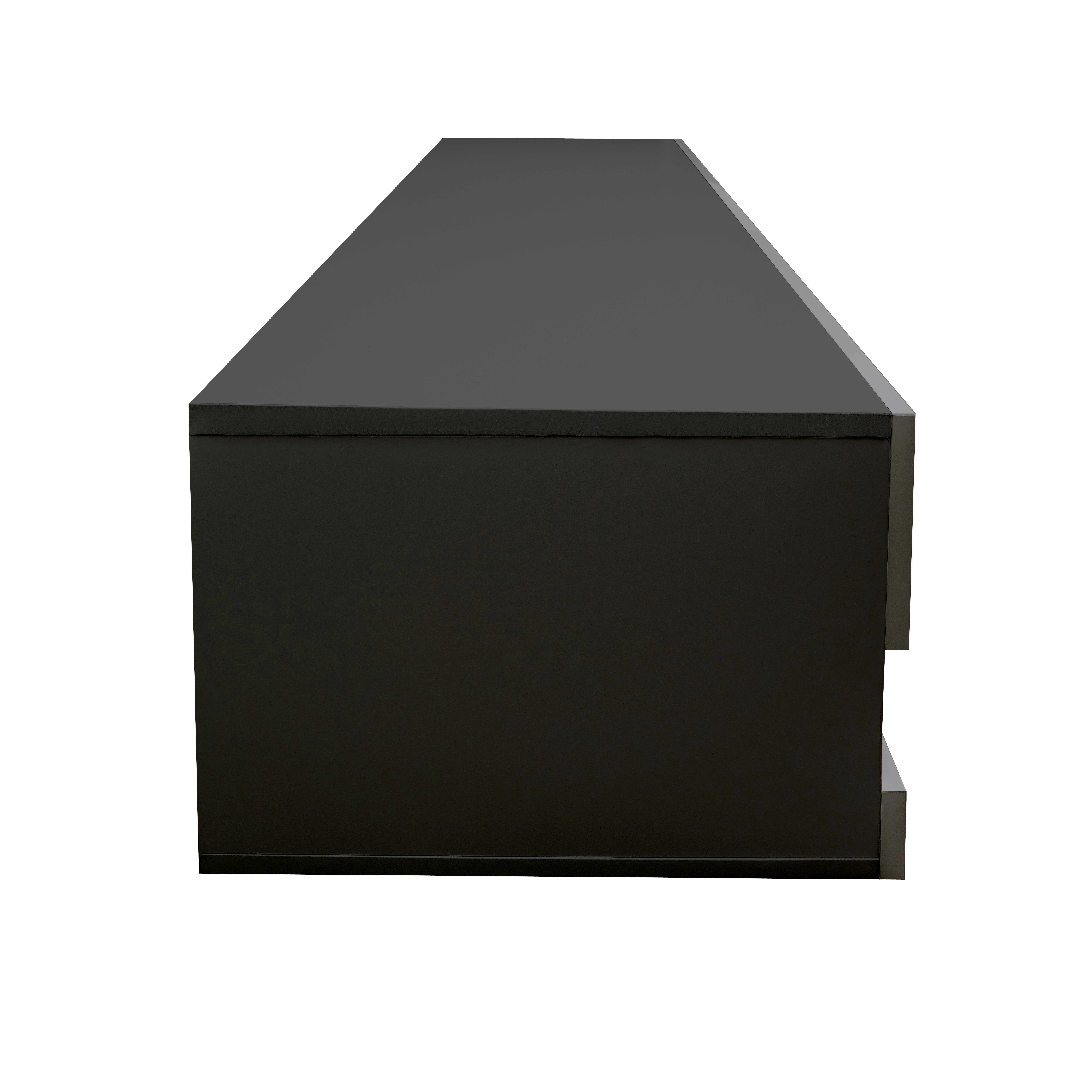 ·[FASHION WHITE DESIGN]:The stylish black design combined with this floating TV shelf brings you a stylish atmosphere, which can easily complement any style of room or furniture. Coupled with a controllable With LED lights, 16 kinds of monochrome and 4 kinds of color change, it will add a touch of elegance and vitality to your bedroom, living room, media room, and office.·[MULTI-FUNCTION STORAGE]: With large storage space, this wall-mounted TV stand is very suitable for storing TV components, game accessories, books, and decorations. You can also put living room decorations on the TV cabinet.·[WIRE MANAGEMENT AND SPACE SAVING]: Cable holes hide messy cables, keeping your things neatly organized. The wall-mounted design does not take up much space and can free up valuable floor space.·[DURABLE AND STABLE]: This floating TV shelf uses thicker material, which has stronger bearing capacity. Comes with standard wood stud wall mounting hardware, large-size floating TV console can accommodate up to 80-inch TV (not only TV).·[EASY TO INSTALL AND RISK-FREE]: This floating console rack is suitable for installation on most types of walls. You only need to follow the instructions to quickly complete the installation. If you have any problems during the installation process, you can find us at any time, and we will provide you with the most satisfactory solution.·High Quality Material - Made of solid wood material with glossy paint process, this LED TV stand has neat lines and hard appearance. Fit up to 80 inch TV Screen, dimensions is W 70.9" × D 16.5" × H 11.8".·Install on solid brick, concrete or an installation surface equivalent to its strength. Its bearing capacity should be greater than 100 kg/square meter. Sand WALL, PLASTERBOARD, MARBLE, GLASS PLATE AND STEEL plate CANNOT be used TO HANG INSTALL TV ARK.