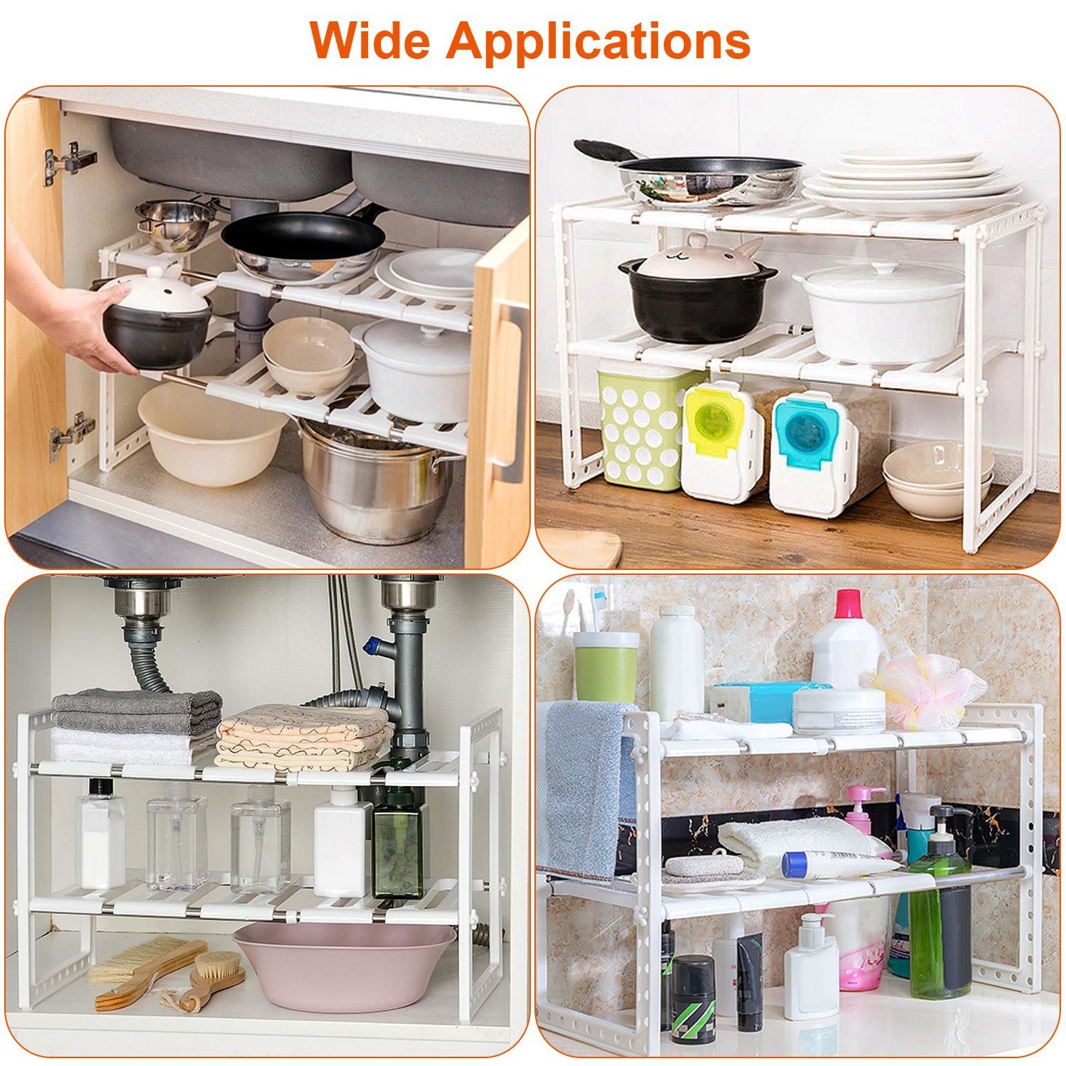 2-Tier Under Sink Organizer Retractable Kitchenware Rack Holders Space Saving Storage Shelf 22LBS Max Load