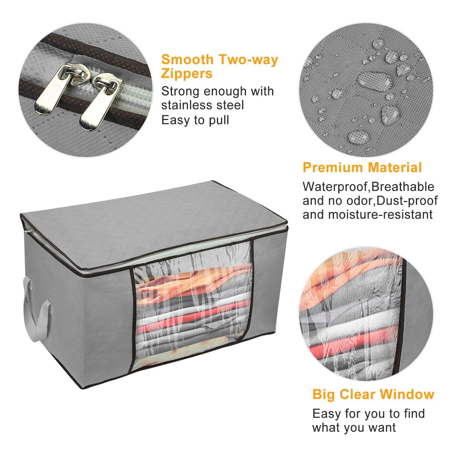 **Keep Your Home Neat with Large Capacity*:The storage bag comes in a set of 2(Blue and Grey),and thew size of each bag is 60 x 40 x 35cm / 23.6x 15.7 x13.8 in,about 90L. It is spacious enough for your comforters,blankets,pillows,jackets,linens,holiday decorations,toys,photos,baby clothes or other clothes.