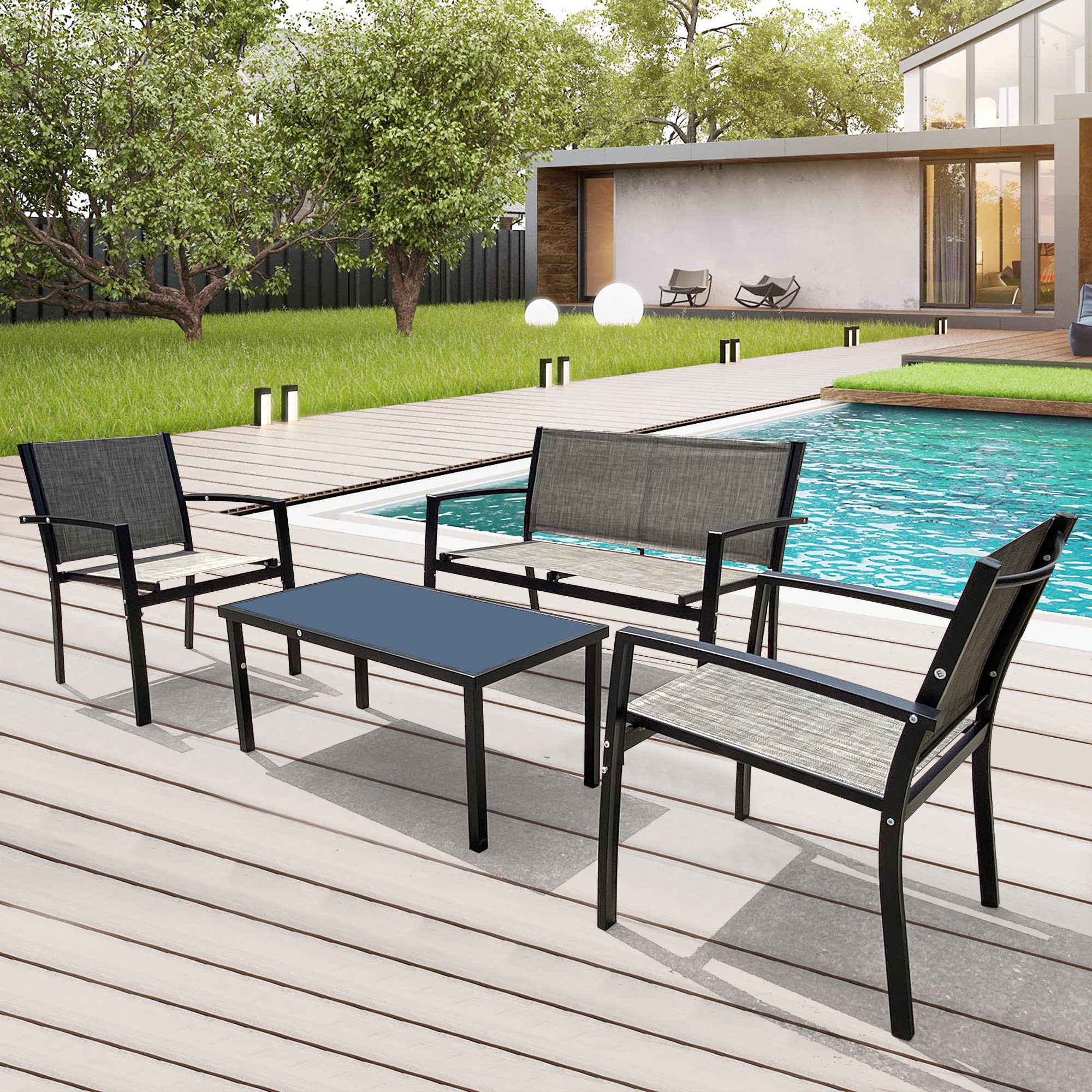 4 Pieces Patio Furniture Set Outdoor Garden Patio Conversation Sets Poolside Lawn Chairs with Glass Coffee Table Porch Furniture