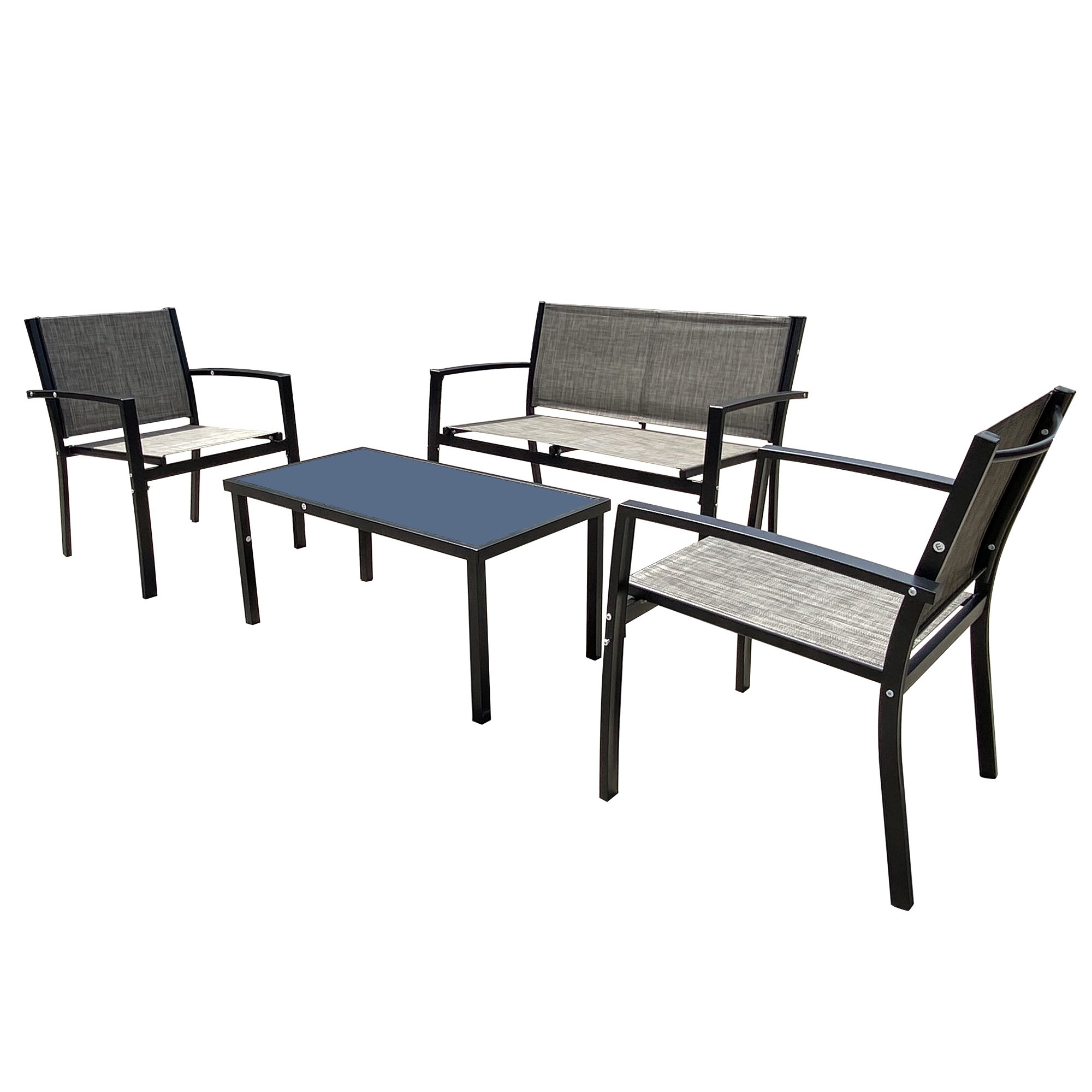 Modern Living 4 Sets Piece Stylish Design Patio Porch Furniture Chairs.Take a seat and relax for a while with this 4-piece conversation set. Perfect for a poolside setup; patios; gardens; and more; this outdoor furniture effortlessly embodies versatility. Designed to last throughout the years; it comes complete with an easy-to-clean glass top coffee table. Invite friends or family over and show off this classy upgrade to your outdoor living space.