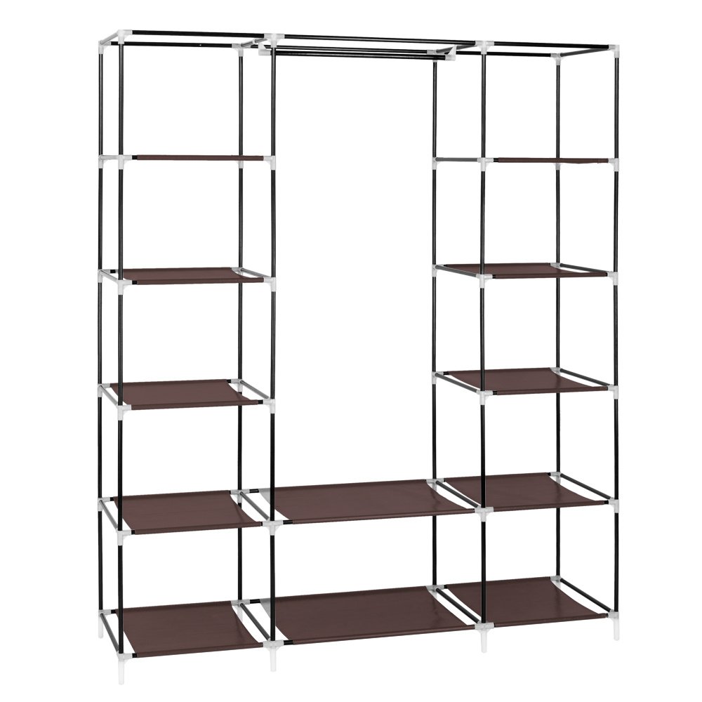 Introductions:Our 69" Portable Closet Storage Organizer Clothes Wardrobe is Made from Selected Non-Woven Fabric Cover; High Quality Steel Tube and PP Plastic Connectors; Which Will Durable and Meet Your Long Term Storage Needs. The Size for The Clothes Wardrobe Makes it Suitable for Organizing Your Small Rooms and Walk-In Closet. Movable Improved Clothes Hanging Rod and 12 Storage Shelves Offers You Enough Space Both for Your Longer Outfits and Folded Clothes. Zippered Dustproof Cover Offered to Keep Your Item Away from Dust and Water-Proof Fabric Tiers are Easy to Clean. It Will be Great Convenient and Functional. Do Not Hesitate to Buy One!Features:1. STURDY & DURABLE CONSTRUCTION: Made from Selected Non-woven Fabric Cover; Water-Proof Fabric Tiers; High Quality Steel Tube and PP Plastic Connectors; This Portable Storage Closet Will Meet Your Long Term Storage Needs.2. SPACE SAVING ORGANIZER:Great Size of58" x 17" x 68 7/8" (147x44x174cm); Which Makes it Suitable for Organizing Your Small Rooms and Walk-in Closet.3. SPACIOUS STORAGE CLOSET: Movable Clothes Hanging Rod and 12 Storage Shelves Offers You Enough Space both for Your Longer Outfits and Folded Clothes.4. DUSTPROOF COVER & WATER-PROOF TIER: Zippered Dustproof Cover Offered to Keep Your Item away from Dust and Water-proof Fabric Tiers are Easy to Clean.5. CONVENIENT TO USE & ASSEMBLE: This Amazing Closet Makes Your Clothes or Daily Accessories Easy to Access; Installation is just Easy; no Tool Required.