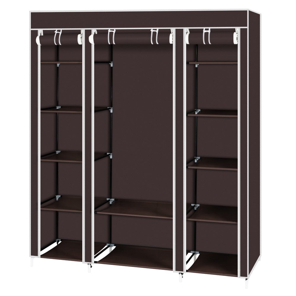 69" Portable Clothes Closet Wardrobe Storage Organizer with Non-Woven Fabric Quick and Easy to Assemble Extra Strong and Durable Dark Brown