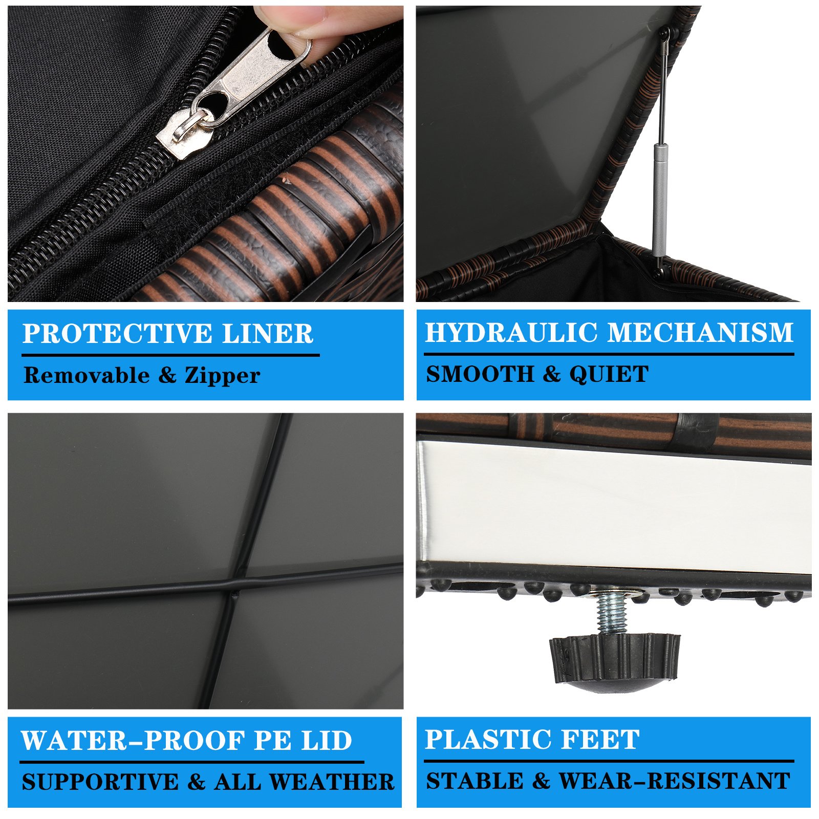 Introductions:Are you always bothered by the inadequate storage space of your house? If so, you're in the right place. This Rattan Locker must be your best choice. It adopts high quality PE cane and iron, which features stable, sturdy and durable. It has a large space for you to store items like clothes, shoes, books, etc. Moreover, with concise design, it can fit with most style of decorations. Combined practical with beautiful, you can't miss it out!Features:1. Made of high quality PE cane and iron, stable, sturdy and durable2. Large storage space can store many items like clothes, shoes, books, etc3. Create additional storage space for your room4. It's practical and concise5. Simple design, coordinate with any style of decorationSpecifications:1. Material: PE Rattan Iron Polyester Cloth PVC Board2. Color: Brown Gradient Rattan Black Liner3. Product Specifications:Overall Size: 71*71*61cmBox Size: 71*71*58cmStorage Size: 66*66*58cmFoot Pad Size: 10*2*2.5cmMaximum Ceiling Height From Ground: 121cmMaximum Height Between The Top Cover And The Frame: 63cmAir Pressure Rod: 80N*1Adjusting Foot Pad: Diameter 2cm, Length Of Screw 1.5cm4. Capacity: 253 L /67 Gal5. Weight: 12 KgPackage Includes:1 x Square Locker1 x Black Inner Sleeve1 x Hardware Assembly Accessories1 x English Instruction Manual