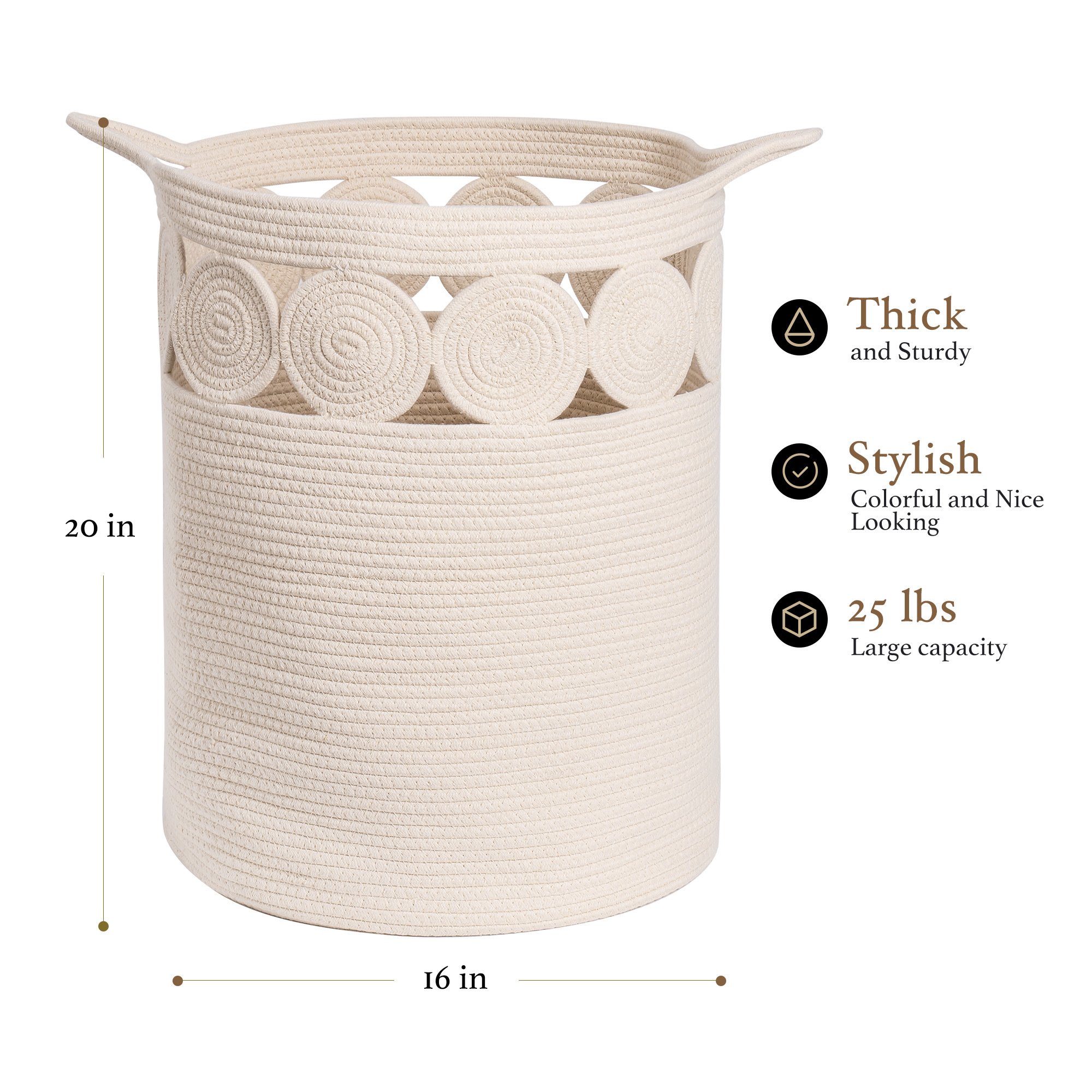 Bohemian Style Cotton Rope Storage Basket for Bedroom, Bathroom and Children's room(Beige)