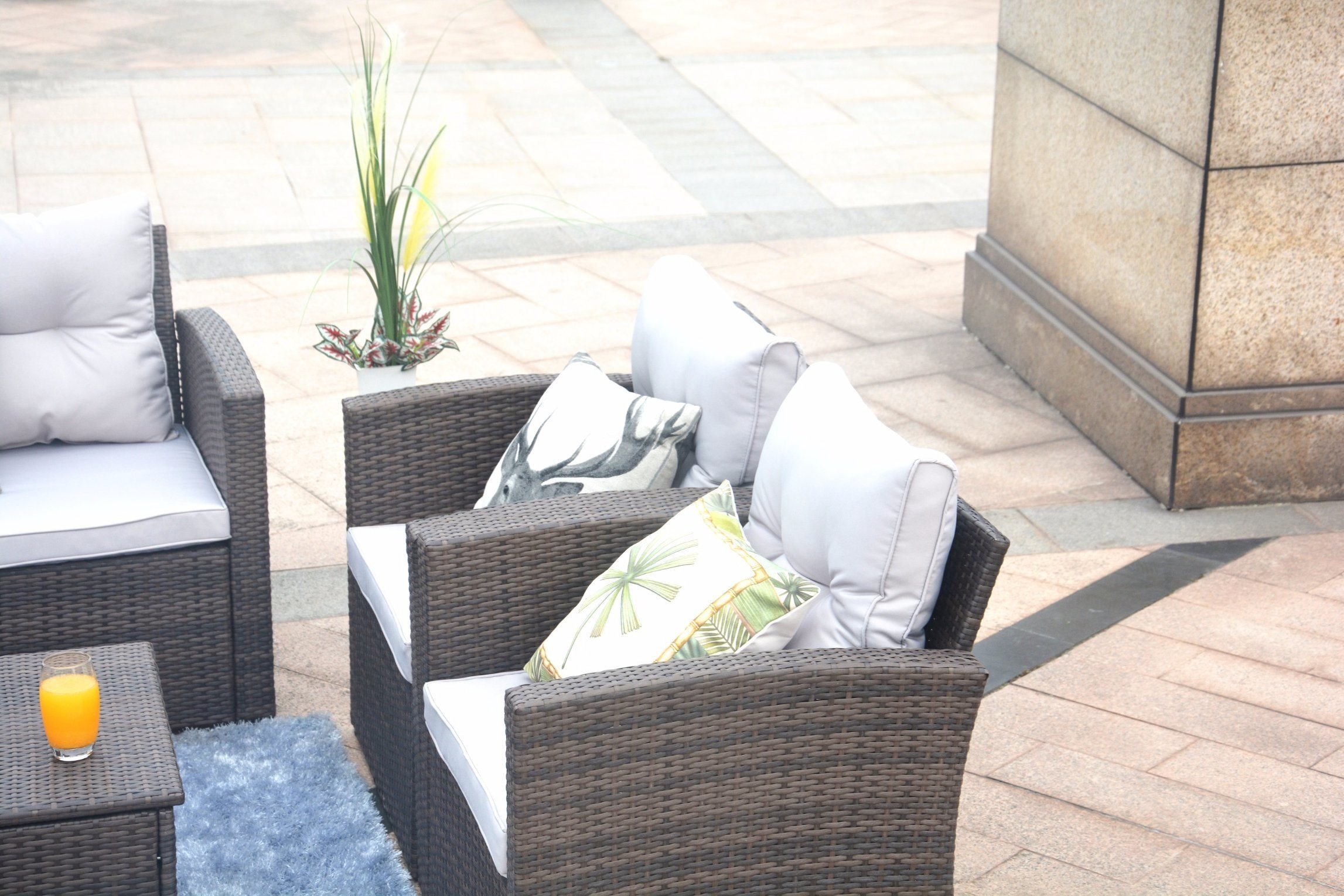 3.This Contemporary Outdoor Sectional Sofa Comes With 2.6-Inch Thick Lofty Sponge Padded Seat Cushions and Back Cushions, Wide and Deep Set Will Provide Enough Room to Seat 7 Friends Comfortably.