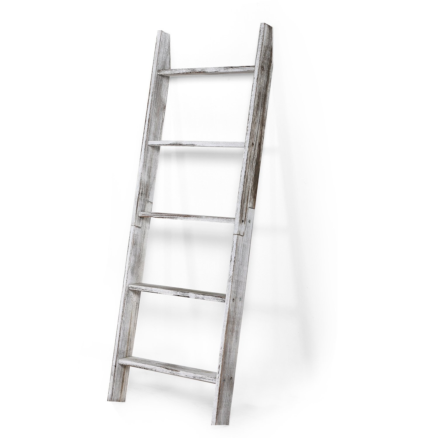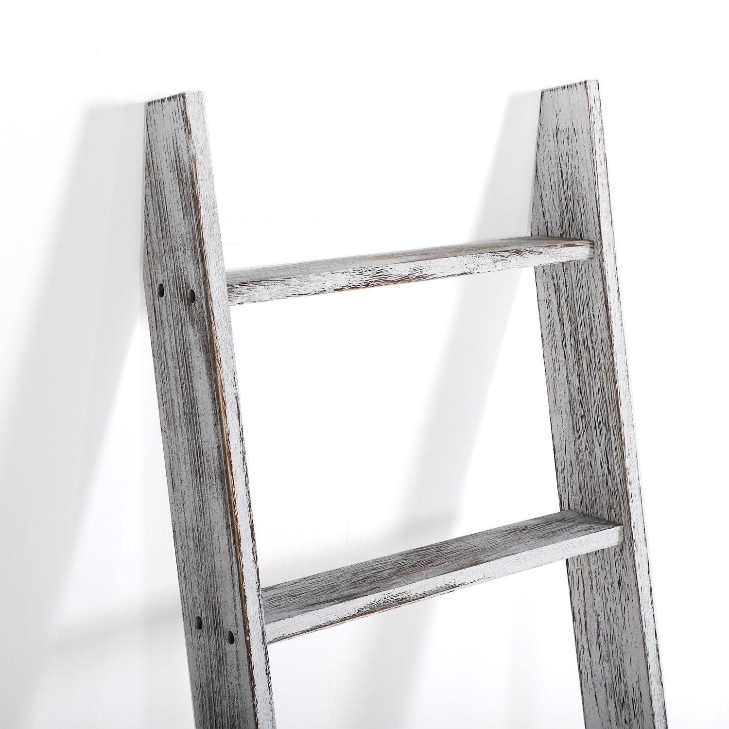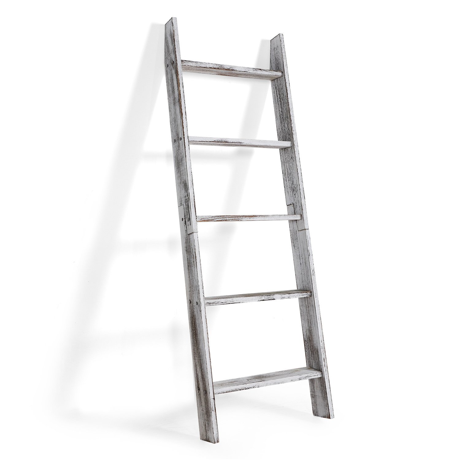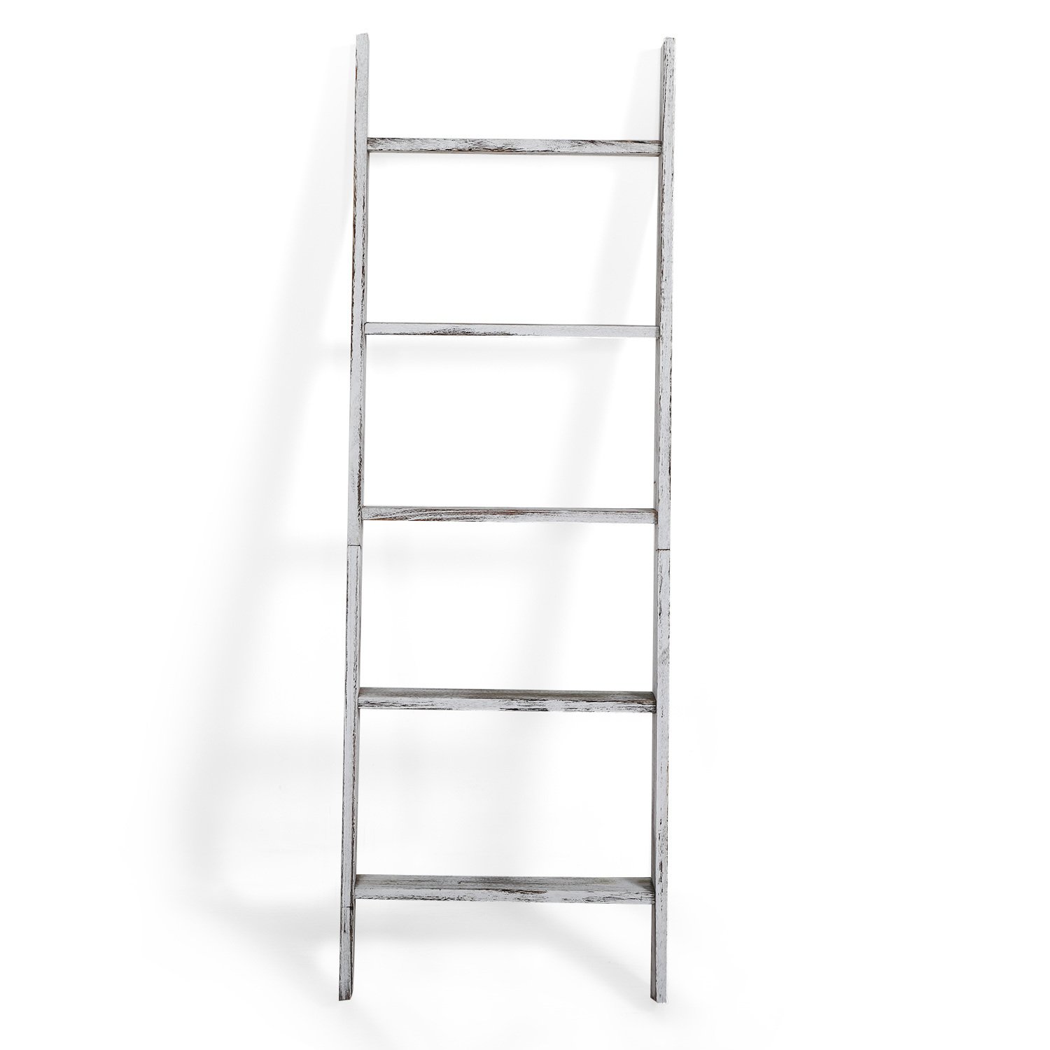 Home > Farmhouse 4.5ft Wall Leaning Wood Blanket Quilt Storage Ladder - Vintage White
