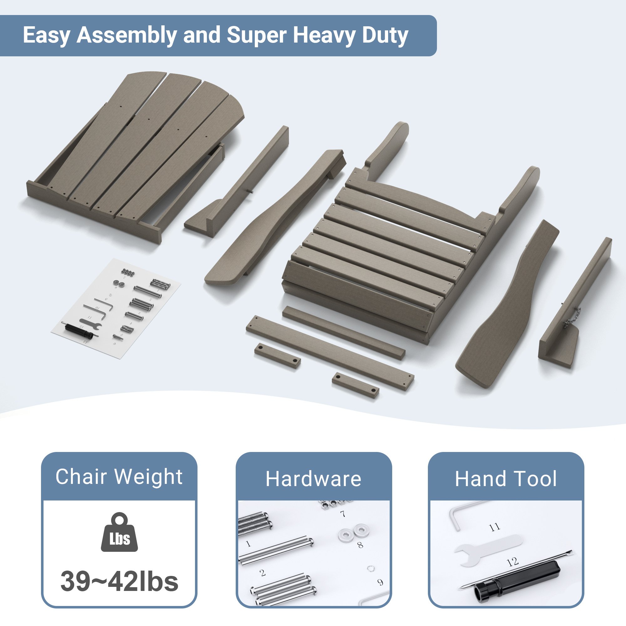 5.5.[Tools Included and Easy Assembly] This Adirondack chair’s assembly is super easy with all the tools and hardware included. If you have a power drill, to use the drill will speed up the process. If you don’t have one, to use the hand tool included will be nice. One person can do put them together.