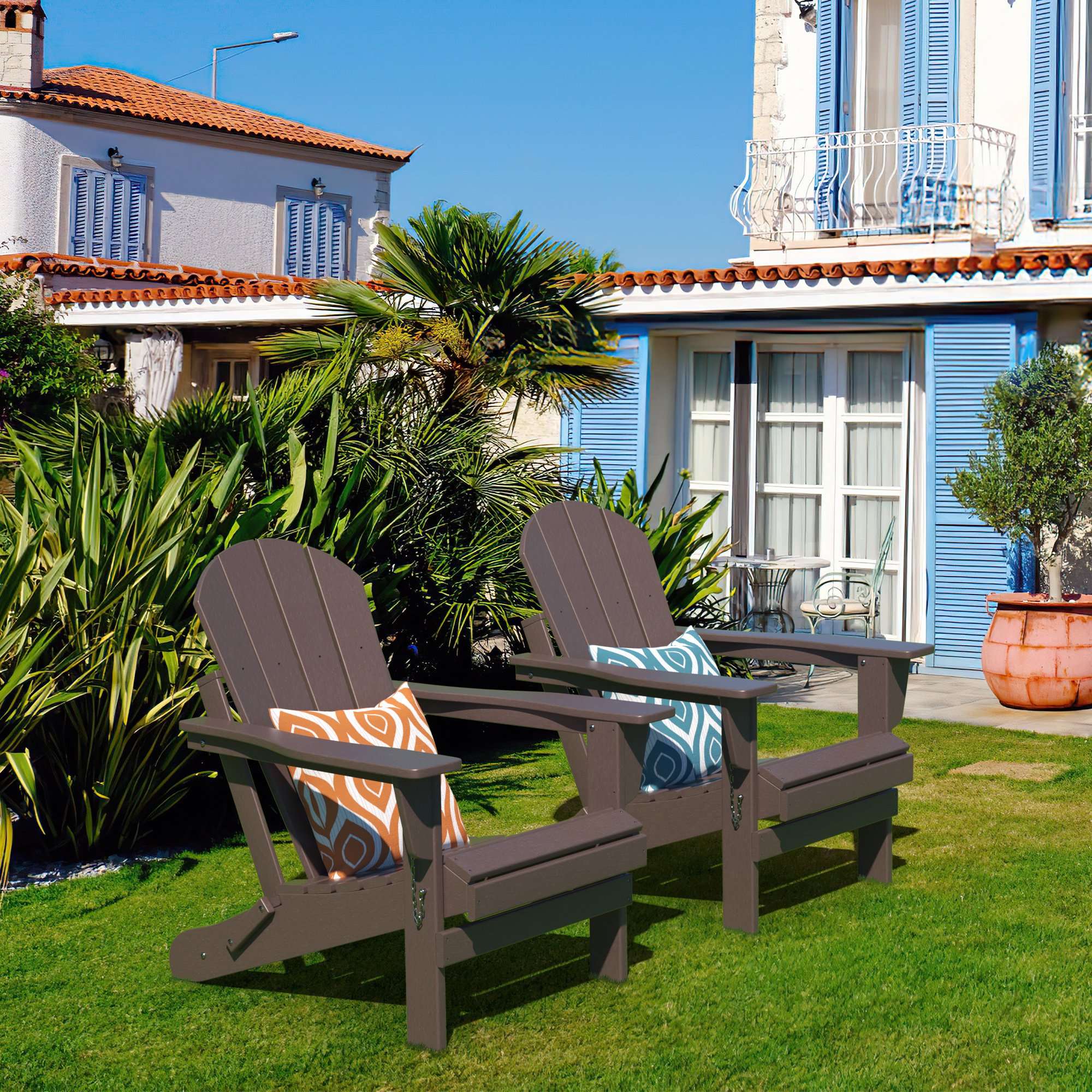 4.[Heavy Duty and Super Sturdy Chair] The HDPE material is heavy duty and it may be heavier than a soft wood chair. The weight is around 8-9 lbs for each chair. It will not blow over in high winds.The wide arms and comfy lounging backrest make the Adirondack lawn chairs adorable and super comfortable.