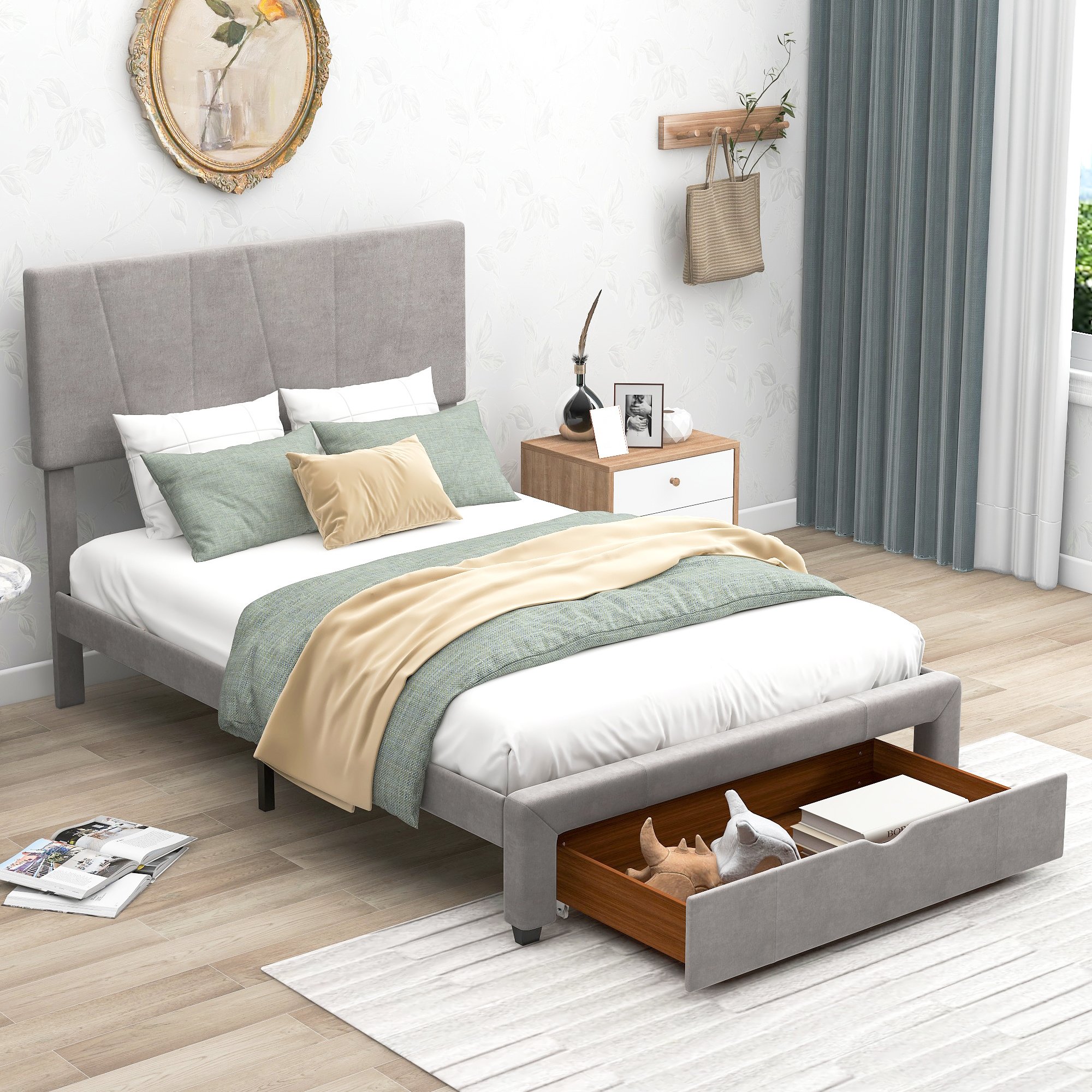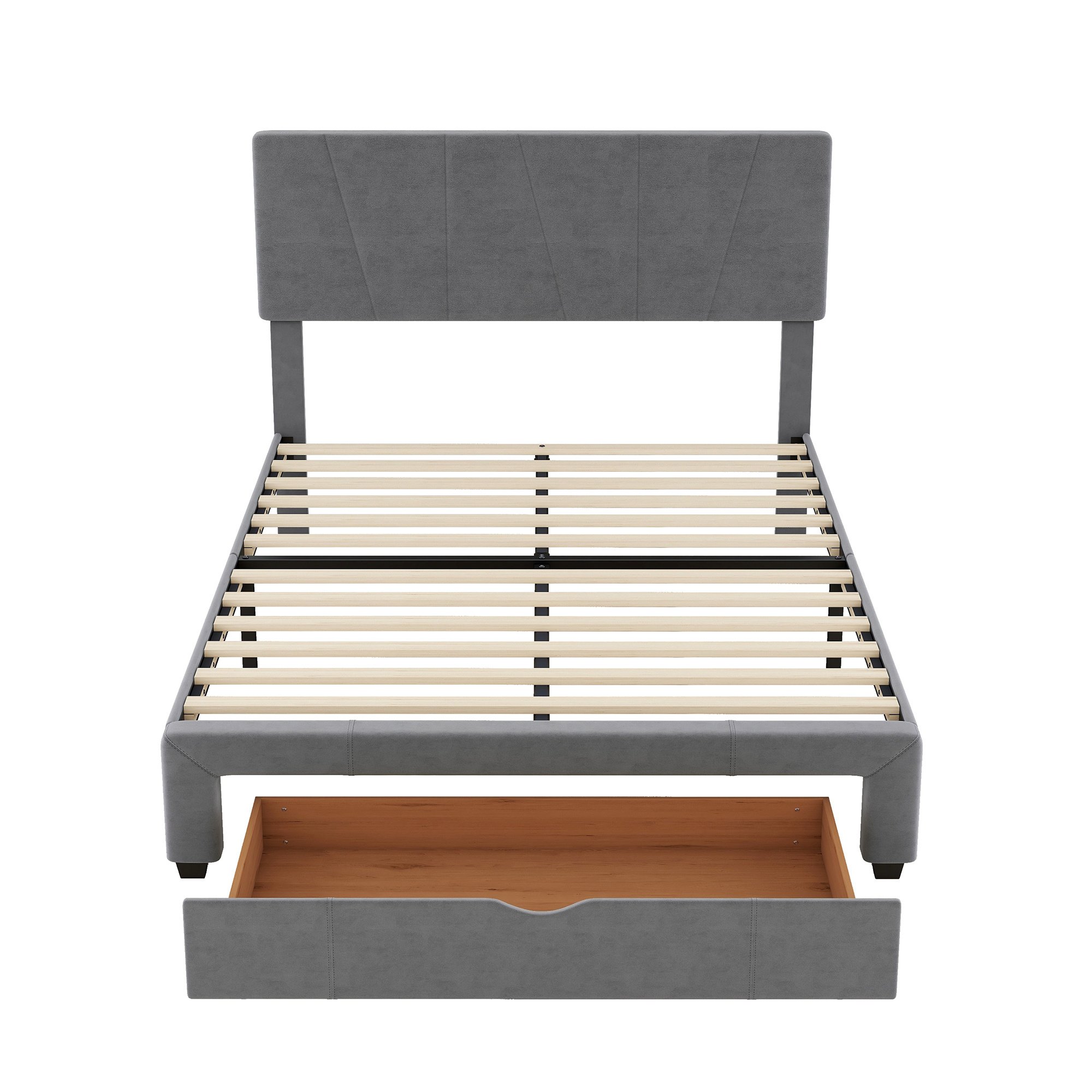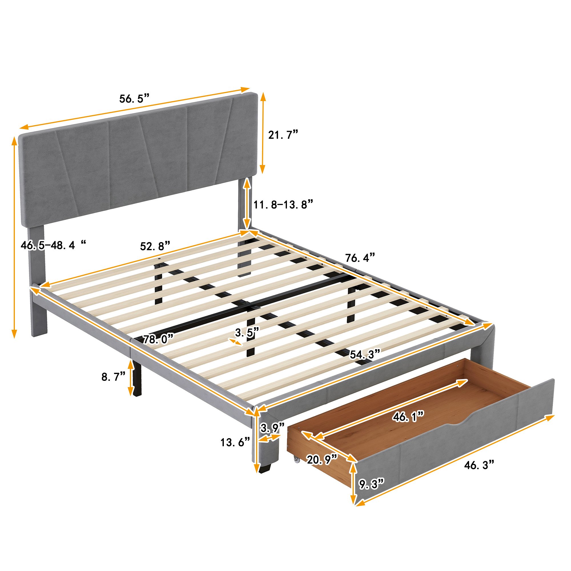 Full Size Upholstery Platform Bed with One Drawer,Adjustable Headboard