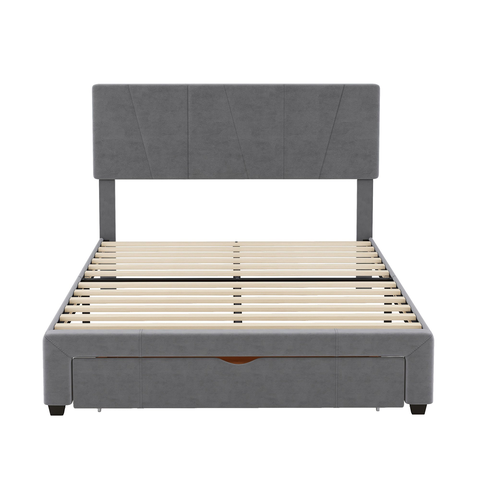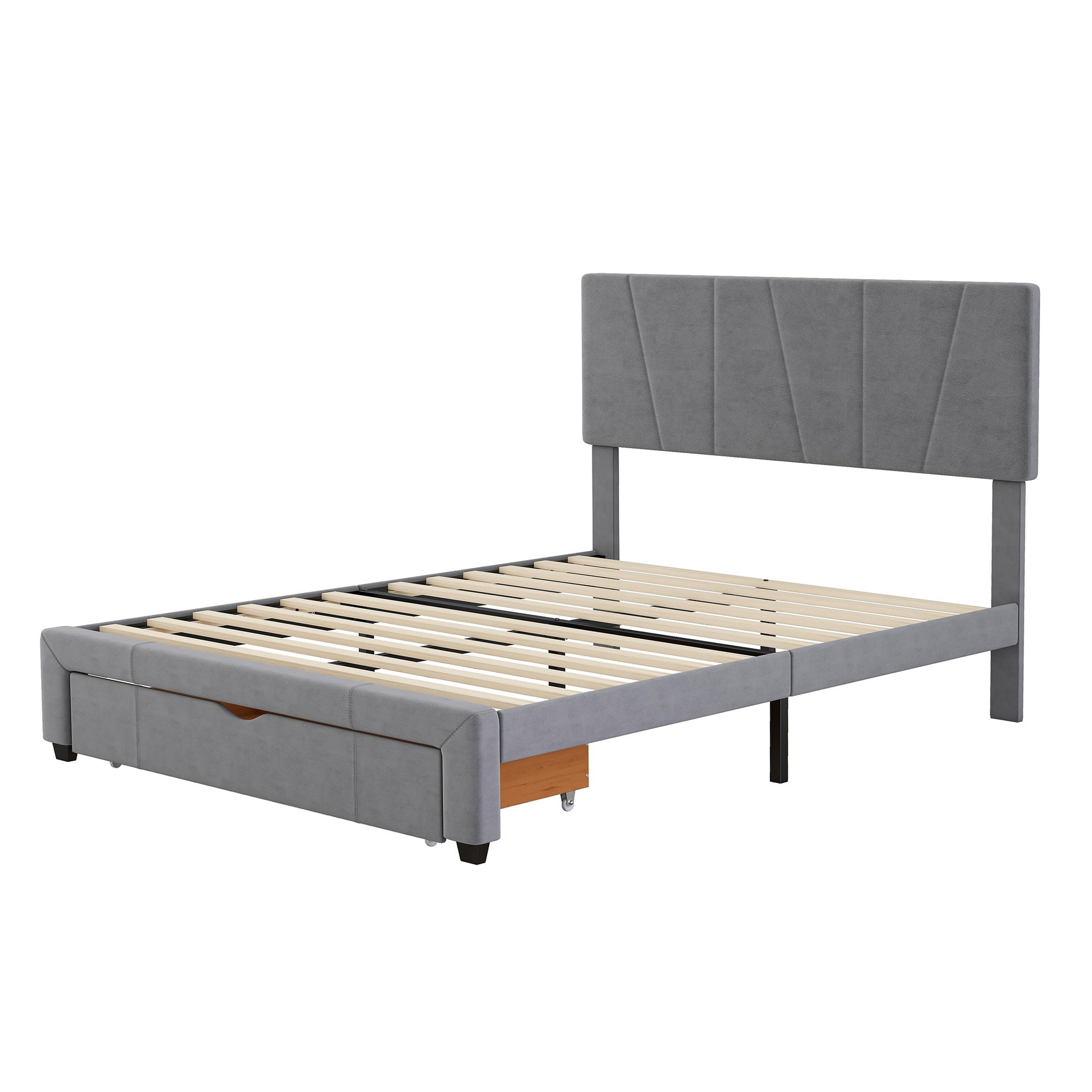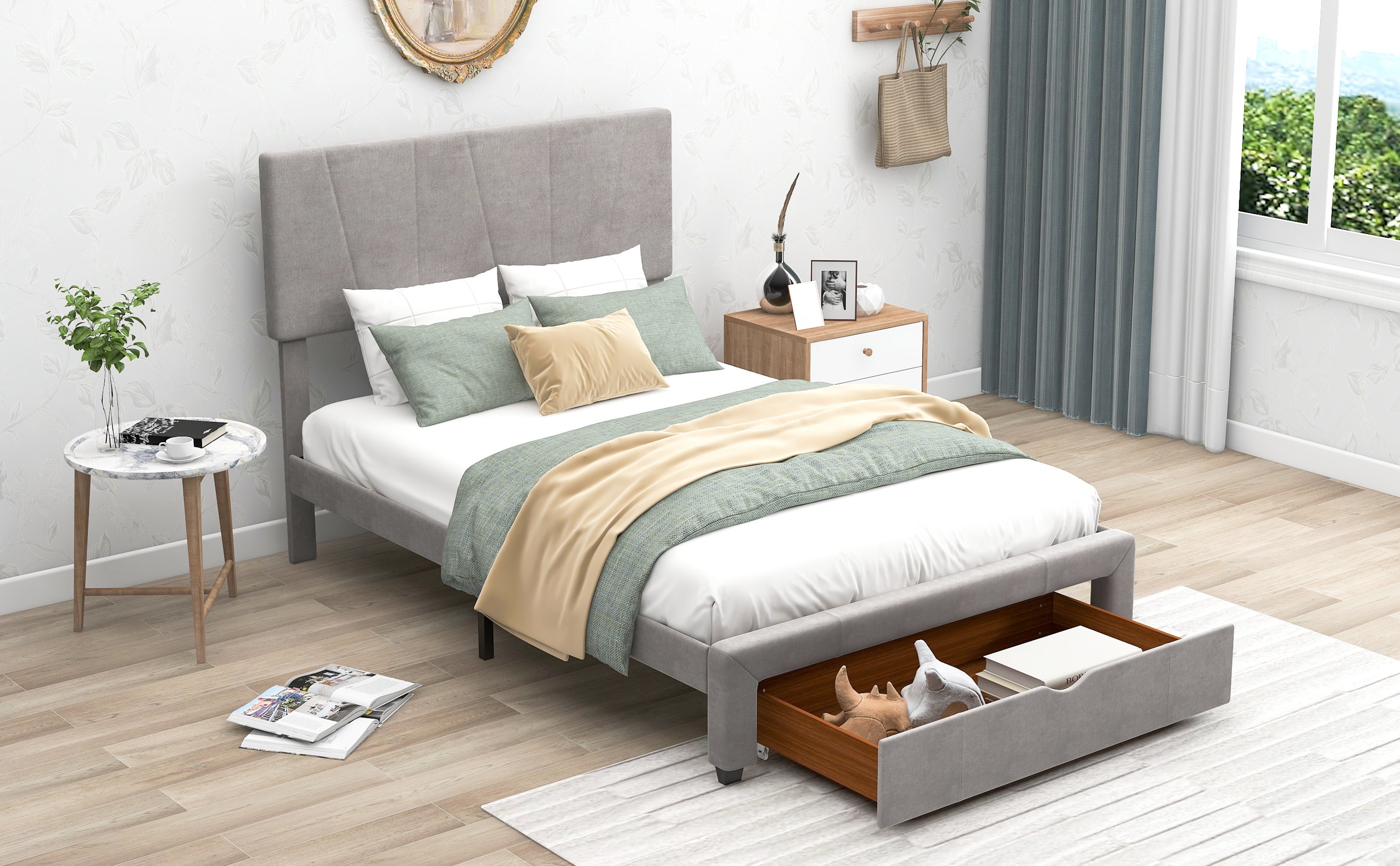 Full Size Upholstery Platform Bed with One Drawer,Adjustable Headboard