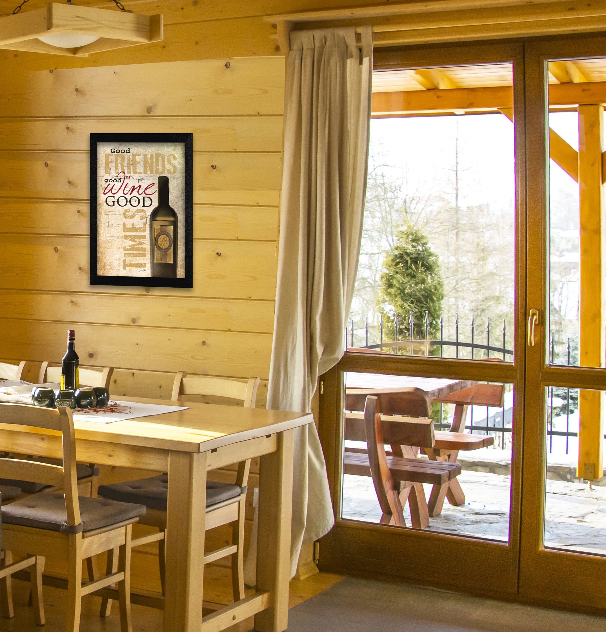 "Good Wine" is a 14"x 20" black framed art print Marla Rae. This artwork features a bottle of wine and reads good friends, good wine, good times by artist Marla Rae. This totally American Made wall decor item features an decorative black frame. The print has a protective, archival finish (glass is not needed) and arrives ready to hang.•Women Owned (WBE)•Textured Artwork with a 'rolled on' acid free acrylic coating to create a canvas painting effect. No glass is necessary.•UV protectant coating protects artwork from fading.•Arrives Ready to Hang
