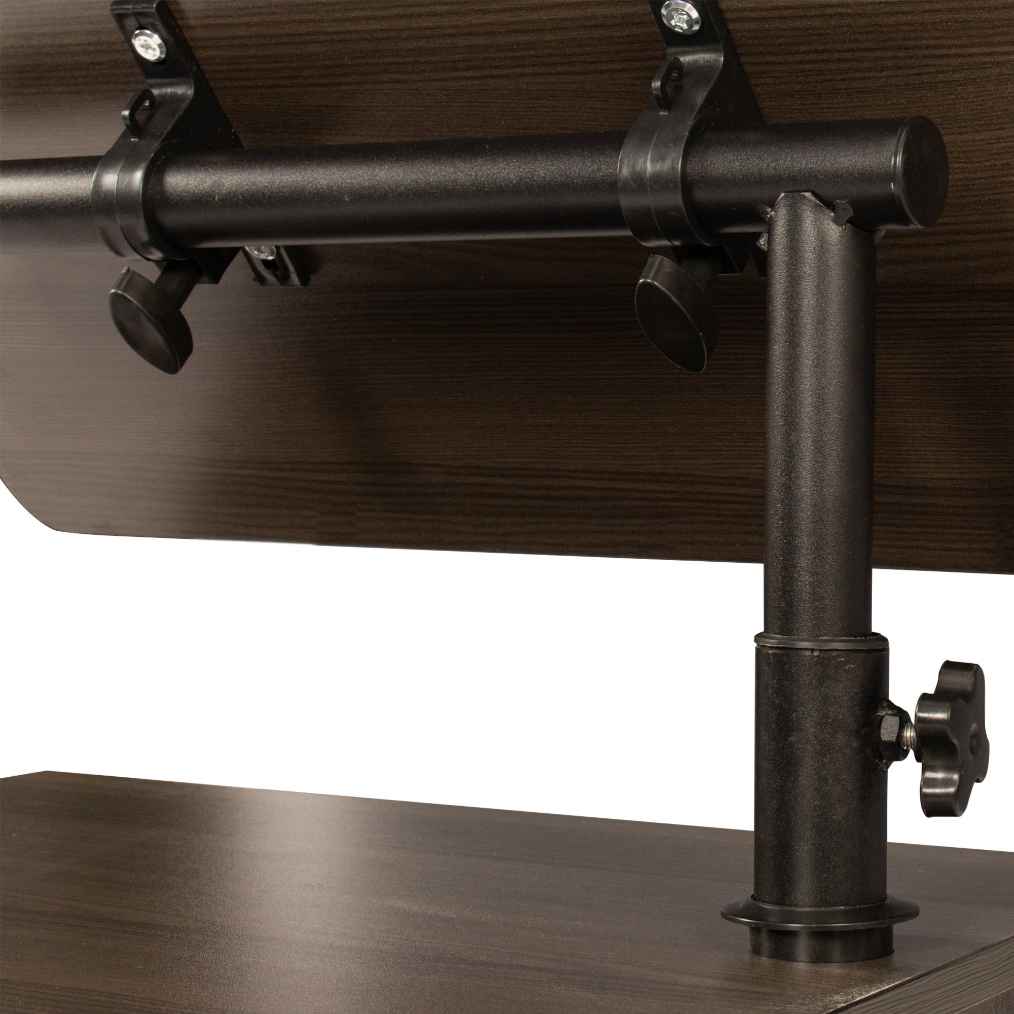 Home > Height Adjustable Overbed End Table Wooden Nightstand with Swivel Top, Storage Drawers, Wheels and Open Shelf, (Black oak)