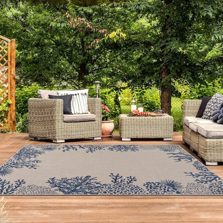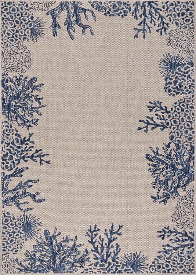 Home Decor Coastal Bordered Coral Reef Indoor/Outdoor Accent Rug