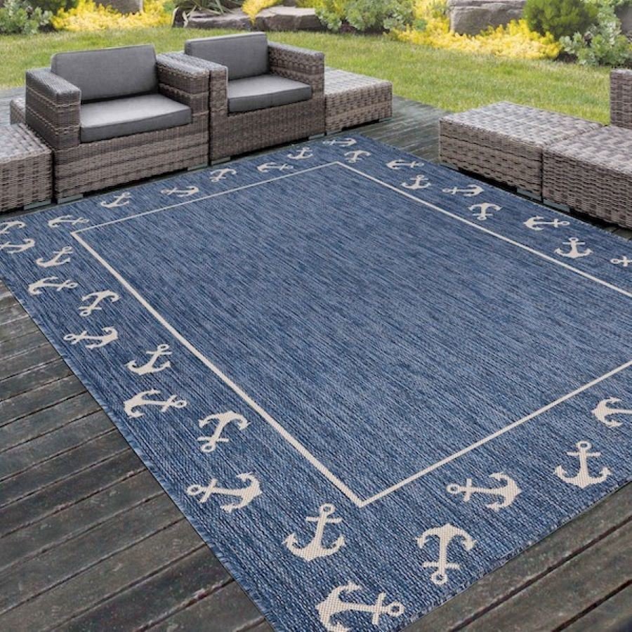 Home Decor Coastal Bordered Coral Reef Indoor/Outdoor Accent Rug