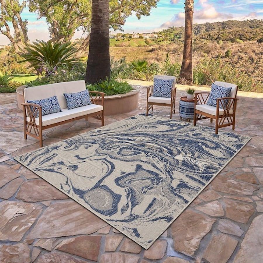 This eye-catching nautical themed rug is a must have for your stylish and functional indoor outdoor space.