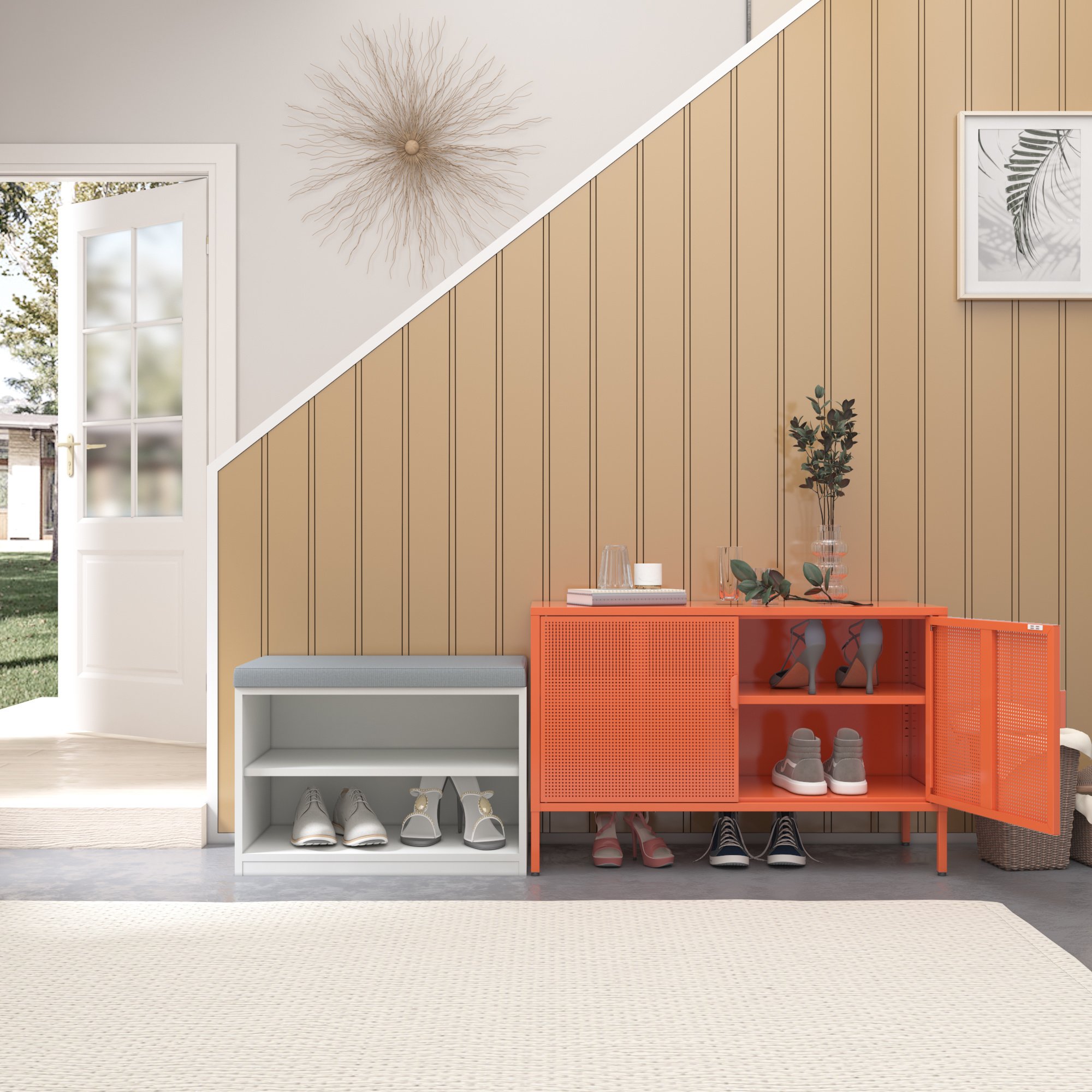 * Adjustable Non-slip Feet-The four feet of the accent storage lockers are adjustable and can be used in uneven ground.