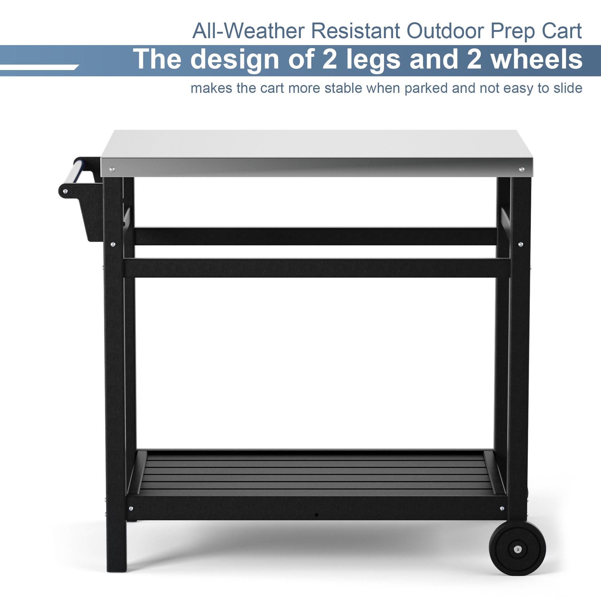 Outdoor Prep Cart Dining Table for Pizza Oven; Patio Grilling Backyard BBQ Grill Cart