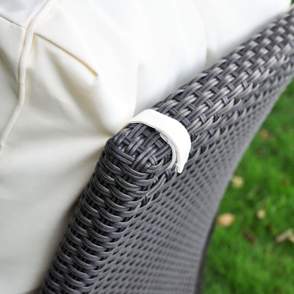 2.Hand Woven Resin Wicker Sofa: High-Density Polyethylene (HDPE) resin rattan wicker, 3000 hours UV protected, prevent fading and cracking ordinarily caused by sunlight, also resist to the water,oil,sweat