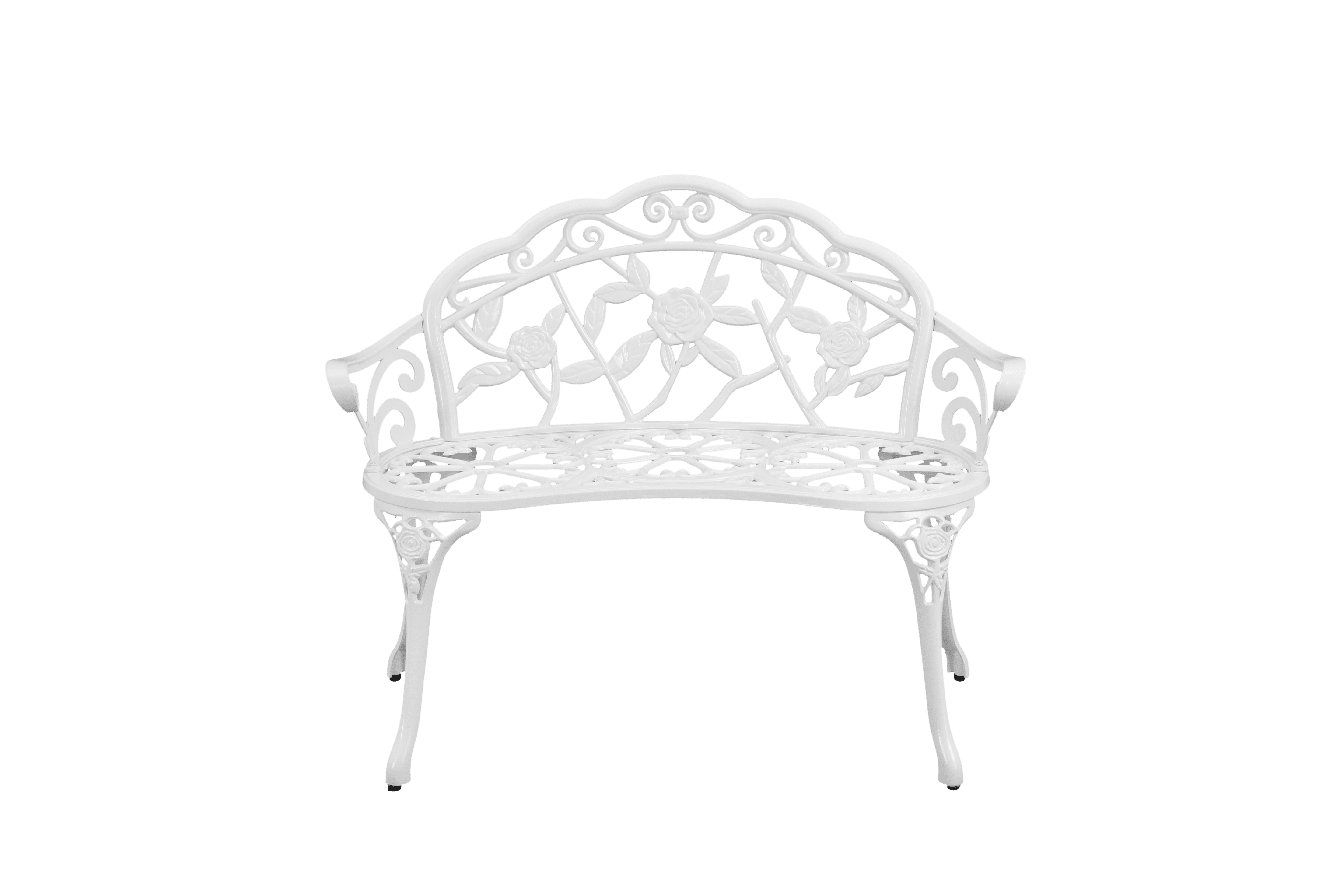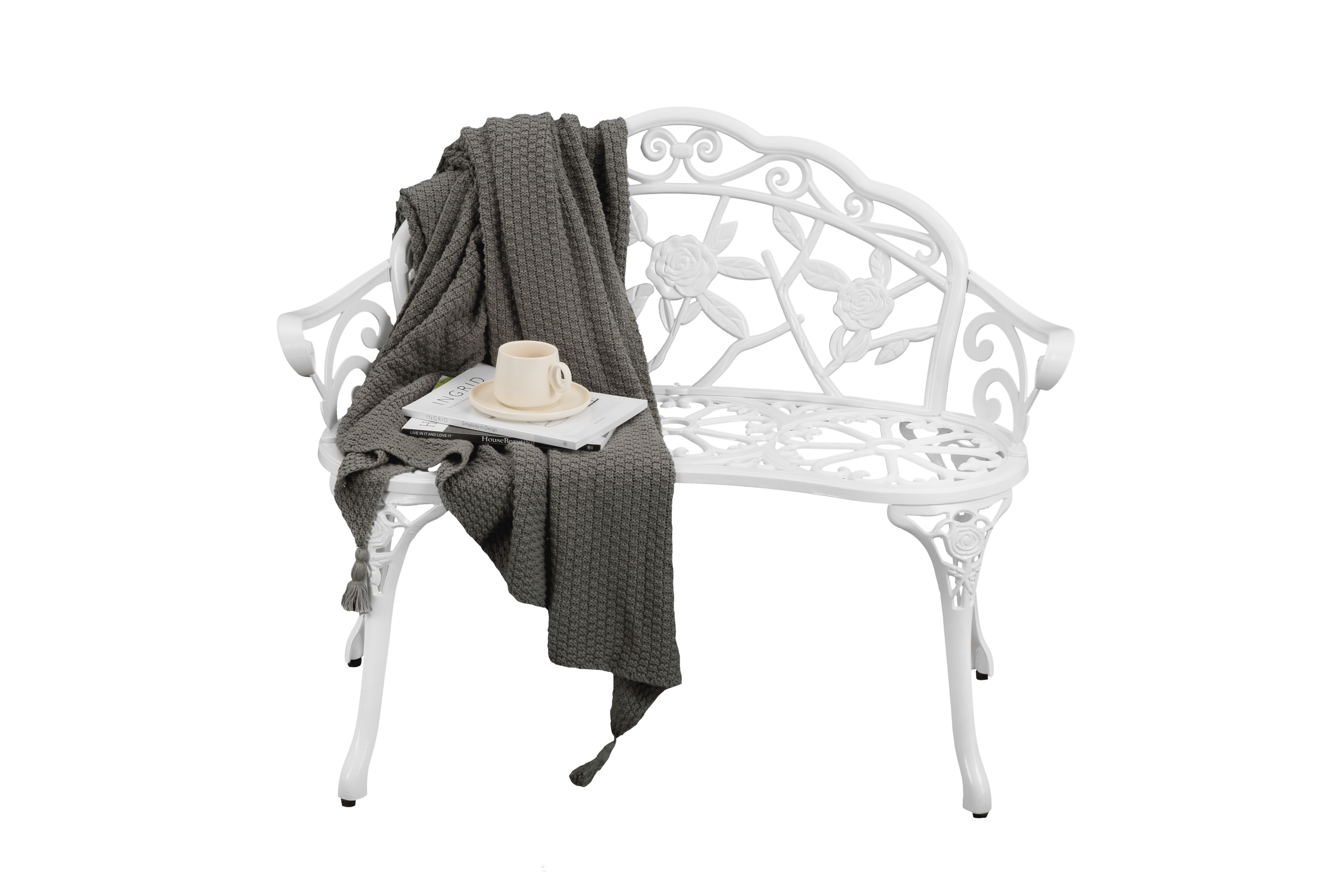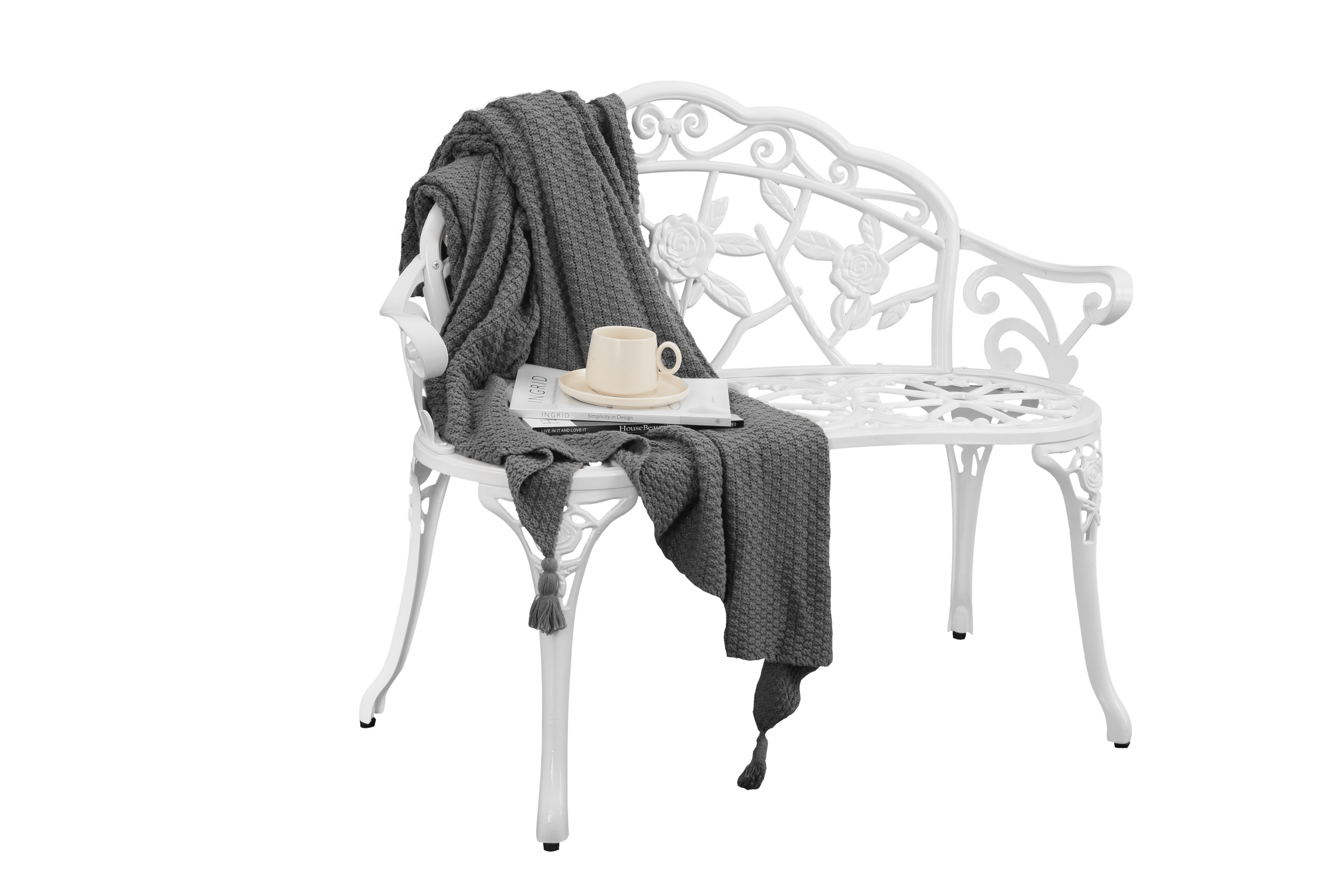 Home > Patio Outdoor Bench, White Cast-Aluminum Garden Benches Metal Loveseat Outdoor Furniture for Park Lawn Front Porch