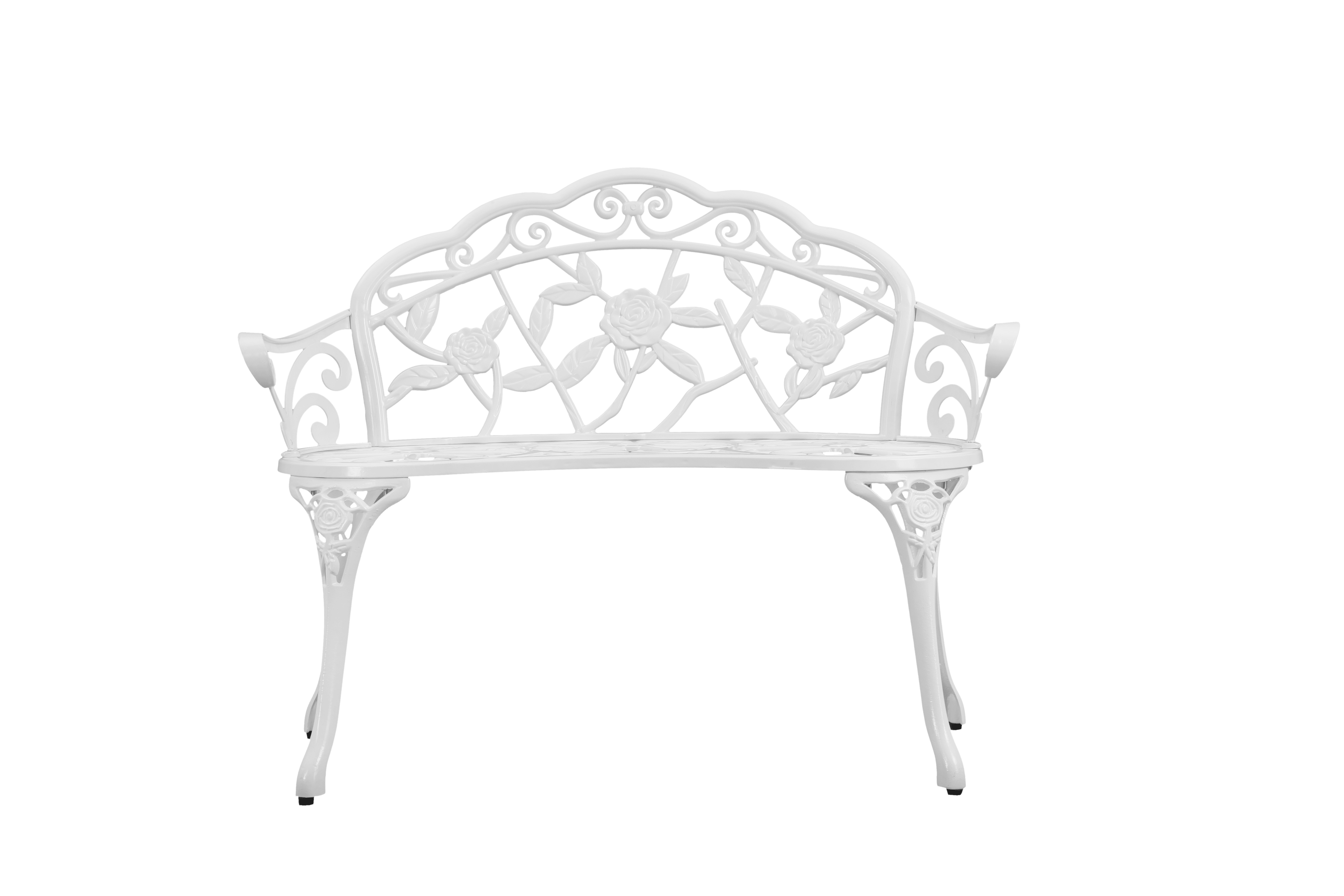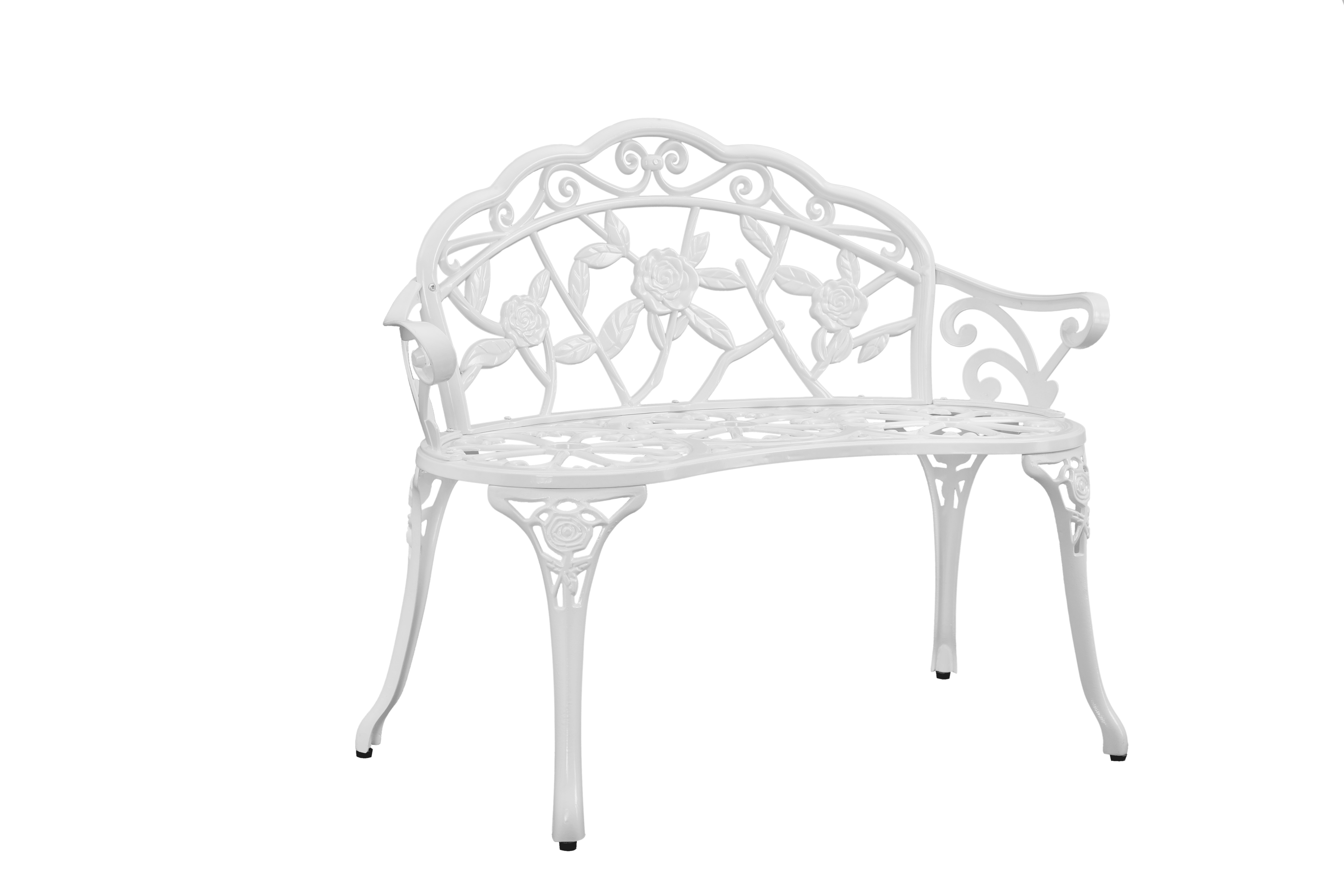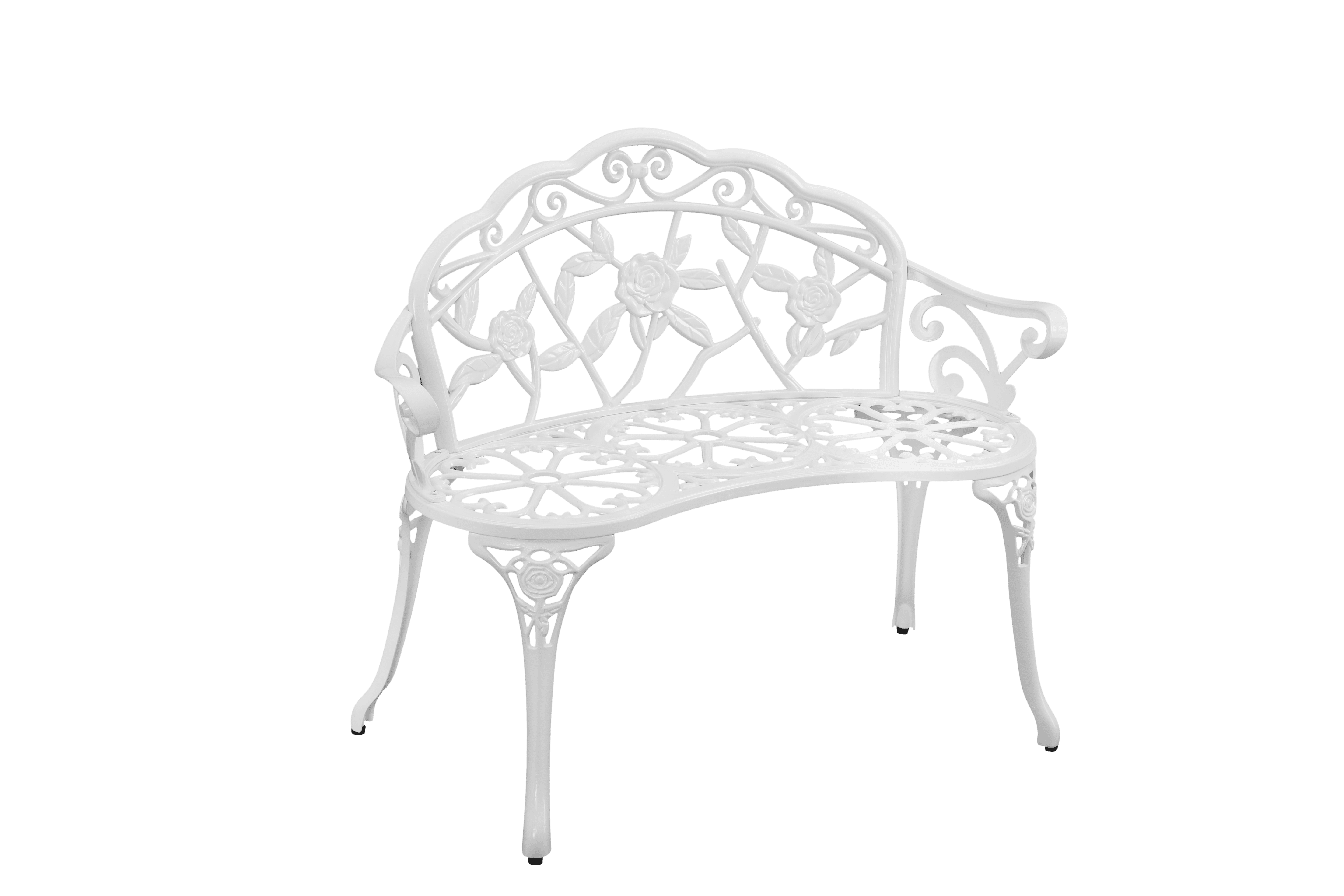 Home > Patio Outdoor Bench, White Cast-Aluminum Garden Benches Metal Loveseat Outdoor Furniture for Park Lawn Front Porch