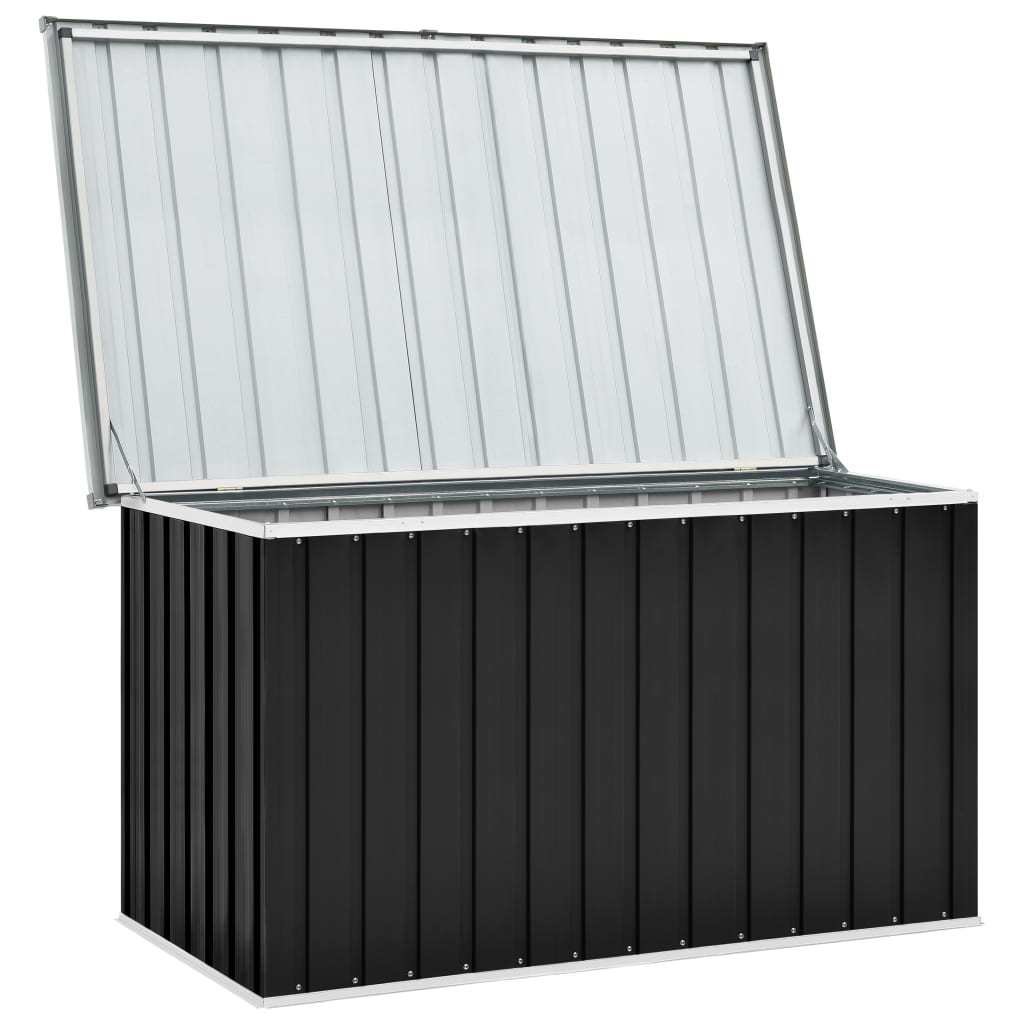 The spacious garden box is excellent for storing cushions; pillows; blankets; toys; and other items. It can also be used as a toolbox with its solid construction. The storage chest is made of sturdy galvanized steel suitable for both indoor and outdoor use. The garden storage box has an understated yet timeless design that blends into every decor.