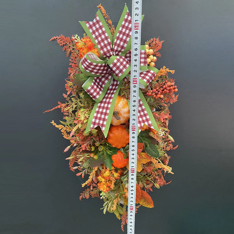 Home > New Christmas Autumn Thanksgiving Wreath Pumpkin Bow Artificial Door Hanging Decoration