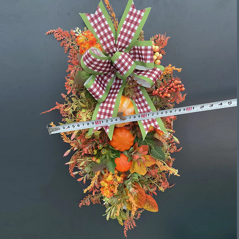 New Christmas Autumn Thanksgiving Wreath Pumpkin Bow Artificial Door Hanging Decoration