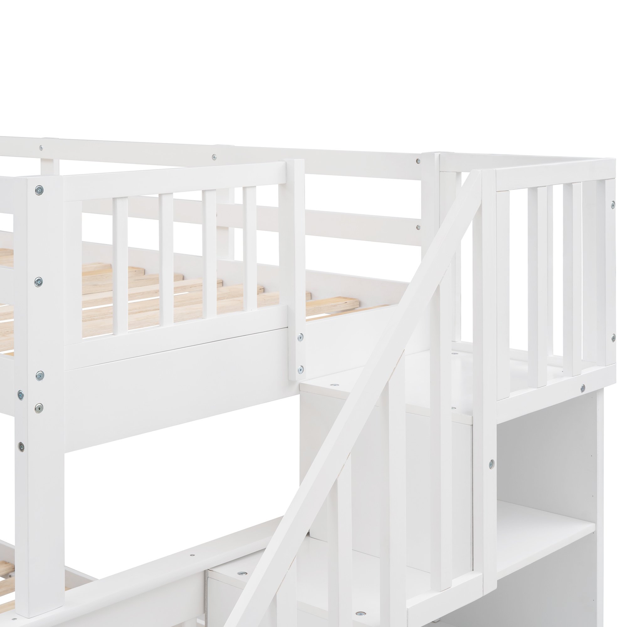 Stairway Twin-Over-Full Bunk Bed with Twin size Trundle, Storage and Guard Rail for Bedroom, Dorm, for Adults