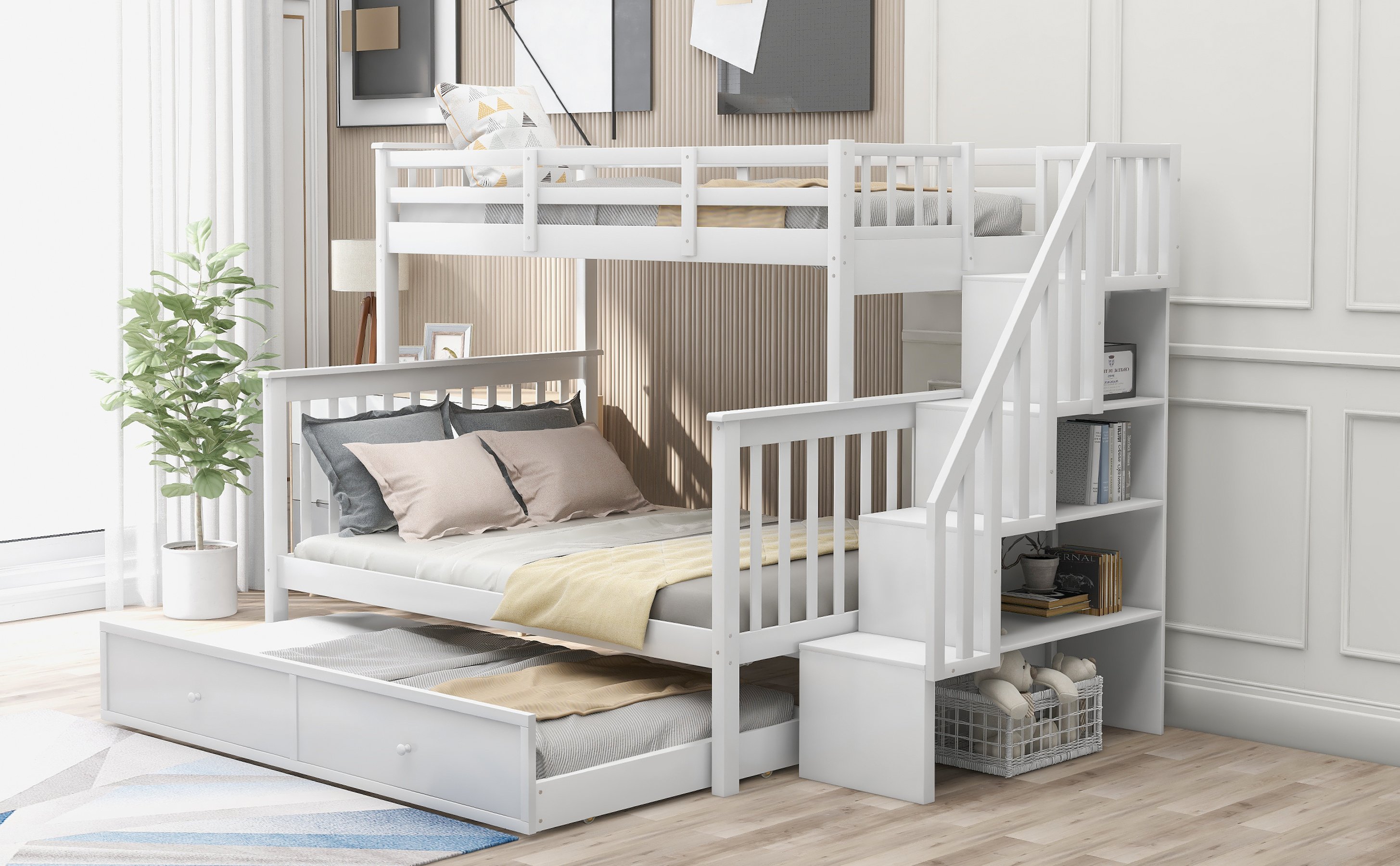 Home > Stairway Twin-Over-Full Bunk Bed with Twin size Trundle, Storage and Guard Rail for Bedroom, Dorm, for Adults
