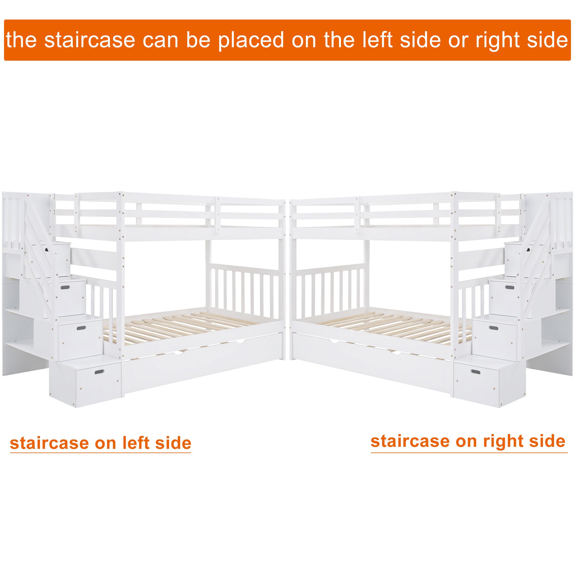 2.This bunk bed can be contracted into a twin over twin bunk bed with a twin size trundle or expanded into a twin over full bunk bed with a twin size trundle to accommodate your family or any overnight sleepers.The staircase can be placed on the left side or right side. No spring box needed.