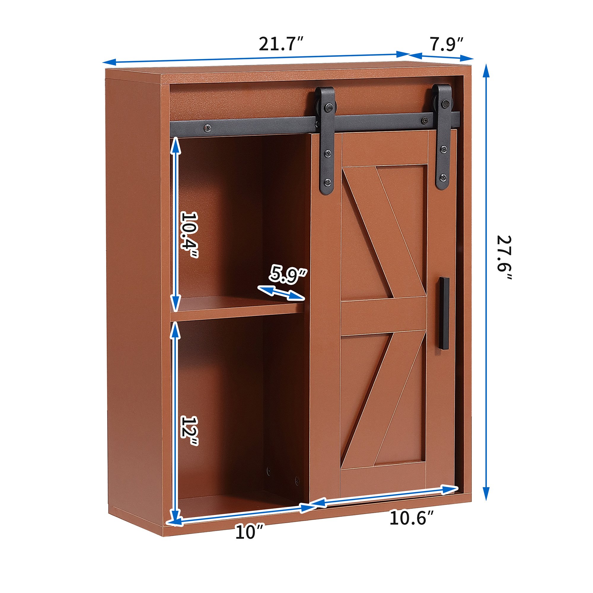 [Classic Style Decor]- This wall cabinet has a minimalist look; versatile and can match any scene at will; bringing you a different visual experience.[Excellent Storage]- It can easily store your daily necessities; add extra storage space for you; help you organize your bathroom and free up space; the sliding door design not only makes it easier to find items; but also allows you to plan to put items that are frequently used and unused.[Perfect Size]-The dimensions of this bathroom cabinet is 21.7''x7.9''x27.6''; the size allows it to be installed in any space. It is not only suitable for the bathroom; but also can be used to place supplies in living room; kitchen; bedroom and office.[Elegant Details]- The cabinet is made of MDF and metal; and it is divided into 5 spaces with 3 heights available to store the right amount of items accordingly. The sliding door design does not pinch your hand and reduces damage to the door from opening and closing.[Easy To Assemble]- With illustrated instructions; it can be installed easily. All hardware and assembly instructions are provided.