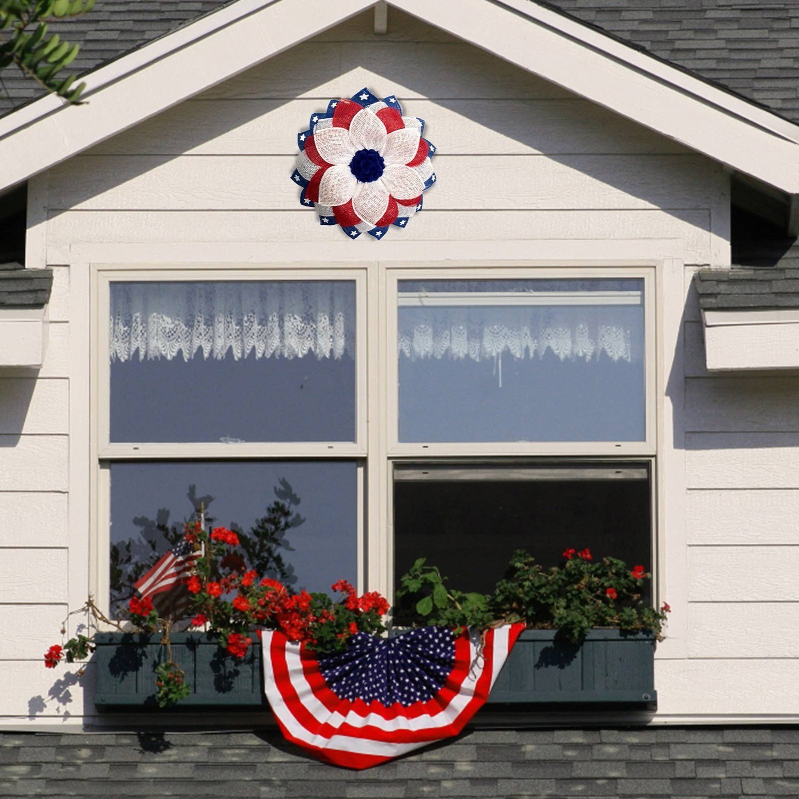 Features: First Choice: Our products are stylishly designed. If you are looking for a gift for your friend; don't hesitate to choose this wreath! Classic design; exquisite packaging; will surprise you Occasion: This Patriotic Day wreath is light enough to hang. The perfect decoration for the 4th of July; this American wreath will be festive COMPOSITION: This patriotic wreath features the same color scheme as the national flag. The colors of this patriotic wreath are so and beautiful that they won't fade easily. Good choice for front door decoration GREATLY DECORATED: This is the perfect 4th of July decoration. Red; white and blue garlands are colorful and ubiquitous. With this wreath; your room will be filled with a festive atmosphere Service Guarantee: If you are not satisfied with our products; please feel to communicate with us. Quick solution within 24 hours